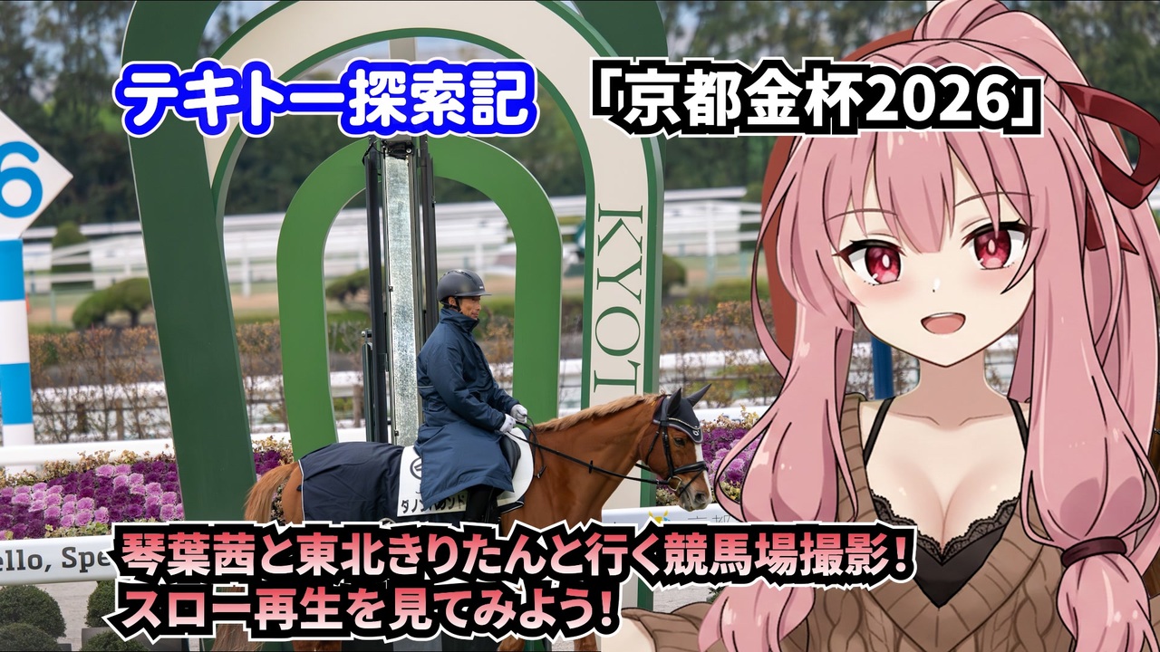 【テキトー探索記】「京都金杯2026」琴葉茜と東北きりたんと行く競馬場撮影! スロー再生を見てみよう!<br><br>皆さんこんにちは、九条まるせです。<br>今年は午年ということで、京都競馬場でお馬さんを撮影してきました。<br>スローモーション撮影をじっくりやってみました。<br>躍動する騎手と馬体の迫力ある映像と、<br>茜ちゃんときりたんのやり取りを楽しんでいただけたらなぁと思います。<br>最後まで見るといいことがあるかもしれません・・・。<br><br>いいね!フォローしてくださると大変励みになります。<br><br>※今回の動画は、Cygamesさんの「ウマ娘プリティダービー」のゲーム内音楽を使用しています。<br><br>九条まるせのX<br><a href="https://x.com/marsekujo" target="_blank" rel="noopener nofollow">https://x.com/marsekujo</a><br><br>Vlog、カメラの動画もやっています。<br>九条まるせのVlog my list<br><a href="https://www.nicovideo.jp/my/mylist/78143671?ref=pc_mypage_mylist" target="_blank" rel="noopener nofollow">https://www.nicovideo.jp/my/mylist/78143671?ref=pc_mypage_mylist</a><br><br>九条まるせのAIアニメ研究<br><a href="https://www.nicovideo.jp/my/mylist/78976040?ref=pc_mypage_mylist" target="_blank" rel="noopener nofollow">https://www.nicovideo.jp/my/mylist/78976040?ref=pc_mypage_mylist</a><br><br>九条まるせのYouTubeチャンネル<br><a href="https://www.youtube.com/@%E4%B9%9D%E6%9D%A1%E3%81%BE%E3%82%8B%E3%81%9B/playlists" target="_blank" rel="noopener nofollow">https://www.youtube.com/@%E4%B9%9D%E6%9D%A1%E3%81%BE%E3%82%8B%E3%81%9B/playlists</a><br><br>今回直リン<br>【テキトー探索記】「京都金杯2026」琴葉茜と東北きりたんと行く競馬場撮影! スロー再生を見てみよう!<br><a href="https://www.nicovideo.jp/watch/sm45833373" target="_blank" rel="noopener nofollow">https://www.nicovideo.jp/watch/sm45833373</a><br><a href="https://www.youtube.com/watch?v=ybrypK48Bwo" target="_blank" rel="noopener nofollow">https://www.youtube.com/watch?v=ybrypK48Bwo</a><br><br>前回直リン<br>【photolog vlog】テキトー探索記「八尾AIR FESTA2025」<br>琴葉茜と東北きりたんと行く航空祭!最後は・・・♡ <br><a href="https://www.nicovideo.jp/watch/sm45747234" target="_blank" rel="noopener nofollow">https://www.nicovideo.jp/watch/sm45747234</a> <br><a href="https://www.youtube.com/watch?v=k_-eKbRG1iI" target="_blank" rel="noopener nofollow">https://www.youtube.com/watch?v=k_-eKbRG1iI</a><br>