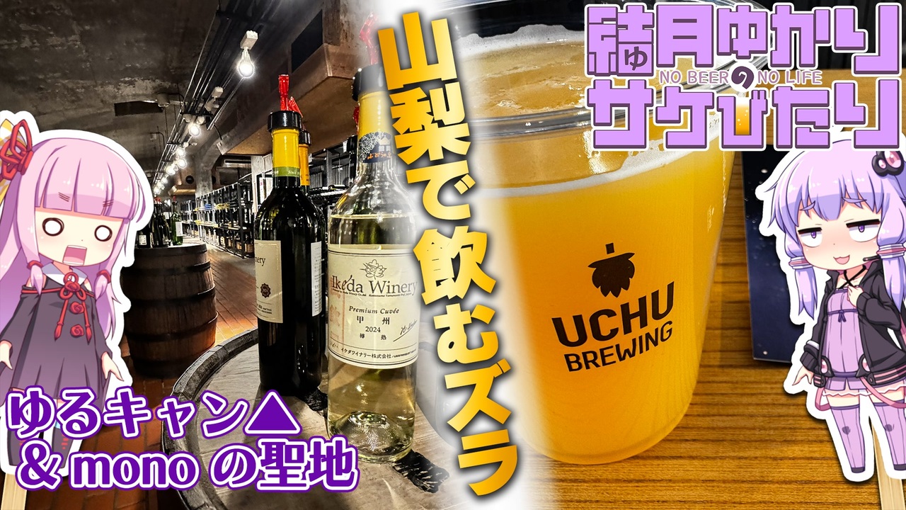 <span style="color: #9900ff; font-size: 24px;">山梨で最高の夏!</span><br>「ゆるキャン△」でしまりんがサウナデビューした<strong>「スパティオ小淵沢 延命の湯」</strong>と、<br>「mono」でハルさんが盛大に酔っ払った<strong>「甲州市勝沼 ぶどうの丘」</strong>でサケびたってきました。<br><span style="color: #ff00ff;">「いいね!」メッセージ:また行きたい名店</span><br><br><span style="color: #4a86e8;"><strong>↓今回のサ活記録はこちら</strong></span><br>「スパティオ小淵沢 延命の湯」<a href="https://sauna-ikitai.com/saunners/19899/posts/9309939" target="_blank" rel="noopener nofollow">https://sauna-ikitai.com/saunners/19899/posts/9309939</a><br><br><span style="color: #0000ff; font-size: 14px;"><strong><</strong></span><span style="color: #0000ff;"><strong>結月ゆかりのサケびたり</strong></span><a href="https://www.nicovideo.jp/mylist/75790185" target="_blank" rel="noopener">mylist/75790185</a><span style="color: #0000ff; font-size: 14px;"><strong>></strong></span><br>前→「クラフトサケ」をご存知か?秋田県男鹿市「稲とアガベ醸造所」<a href="https://www.nicovideo.jp/watch/sm45753186" class="watch">sm45753186</a><br><br><strong>制作:ベホイミProject(<a href="https://www.nicovideo.jp/mylist/27336" target="_blank" rel="noopener">mylist/27336</a>)</strong><br>Twitter:<a href="https://twitter.com/BehoimiP" target="_blank" rel="noopener nofollow">https://twitter.com/BehoimiP</a><br>YouTube「T.A.S魔理沙ちゃんねる」:<a href="https://www.youtube.com/c/TasMarisa" target="_blank" rel="noopener nofollow">https://www.youtube.com/c/TasMarisa</a>