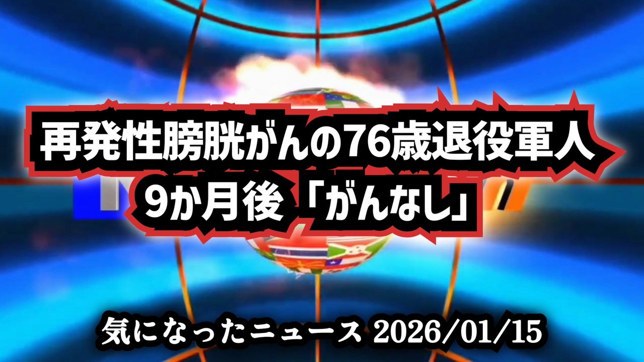 【がん治療】◆76歳退役軍人、再発性膀胱がんが9か月後に「がんなし」イベルメクチン×フェンベンダゾールの実例【ウイリアム・マキス博士】<br><br>9か月後<br>検査で「がんなし」<br><br>あらすじ<br>再発性膀胱がんで複数回の手術を受けてきた76歳の米国陸軍退役軍人。2025年4月からイベルメクチンとフェンベンダゾールを併用開始。2026年1月7日の膀胱内視鏡検査で『がんは見つからなかった』と確認され、診断以来初のがん寛解となった。当初は代替療法に慎重だった主治医も、結果を受け『役立っているため継続を勧める』と評価を変更。イベルメクチン、フェンベンダゾール、膀胱がん、がん寛解、患者体験、代替療法、臨床結果、医師の判断、退役軍人、実話、最新事例を記録する。<br><br>◆今回の台本&詳細<a href="https://keiichiro8140.hatenablog.com/entry/26011555111" target="_blank" rel="noopener nofollow">https://keiichiro8140.hatenablog.com/entry/26011555111</a><br><br>◆これまでの動画<a href="https://x.gd/sPXoJ" target="_blank" rel="noopener nofollow">https://x.gd/sPXoJ</a><br><br>◆もしも(BAN)の時のためのマイリンク集<a href="https://lit.link/K-16_News44" target="_blank" rel="noopener nofollow">https://lit.link/K-16_News44</a><br><br>ご覧いただきありがとうございます<br>m(_ _)m<br><br>気になったニュース 2026/01/15<br><br />著作権、肖像権に配慮して作成しております。<br><br>◆気になったニュースの台本!?<br>メモ代わりに作った台本をそのままあげてます<br><a href="https://keiichiro8140.hatenablog.com/." target="_blank" rel="noopener nofollow">https://keiichiro8140.hatenablog.com/.</a><br><br><br>ここからはシリーズ紹介<br><br><br>◆ ワクチン解毒・デトックス<br><a href="https://x.gd/fZweg" target="_blank" rel="noopener nofollow">https://x.gd/fZweg</a><br><br>◆ウイリアム・マキス博士のがん治療(イベルメクチン・フェンベンダゾール等)<br><a href="https://x.gd/AtFYS" target="_blank" rel="noopener nofollow">https://x.gd/AtFYS</a><br><br>◆予防接種健康被害救済制度<br><a href="https://x.gd/0xK9x" target="_blank" rel="noopener nofollow">https://x.gd/0xK9x</a><br><br>◆気になったニュース #1501~<br><br>◆ 【ショートver】気になったニュース<br><a href="https://x.gd/7MxXC" target="_blank" rel="noopener nofollow">https://x.gd/7MxXC</a><br><br>◆ 気になったニュース #1001~<br><a href="https://x.gd/Lp8gv" target="_blank" rel="noopener nofollow">https://x.gd/Lp8gv</a><br><br>◆ 気になったニュース #501~<br><a href="https://x.gd/EmbS4" target="_blank" rel="noopener nofollow">https://x.gd/EmbS4</a><br><br>◆ 気になったニュース #1~#500<br><a href="https://x.gd/uPhNb" target="_blank" rel="noopener nofollow">https://x.gd/uPhNb</a><br><br>◆ X(旧Twitter)・テレグラムで気になった情報<br><a href="https://x.gd/YG6FT" target="_blank" rel="noopener nofollow">https://x.gd/YG6FT</a><br><br>◆ 日比谷5万人パレードデ⚪生放送アーカイブ動画<br><a href="https://x.gd/3CHJv" target="_blank" rel="noopener nofollow">https://x.gd/3CHJv</a><br><br>◆日比谷5万人パレード⚪モのマイリスト作ってみました<br><a href="https://nico.ms/mylist/76828848?ref=sp_other" target="_blank" rel="noopener nofollow">https://nico.ms/mylist/76828848?ref=sp_other</a><br><br>◆3.30 令和の百姓⚪⚪<br><a href="https://www.nicovideo.jp/series/511791?ref=garage_share_other" target="_blank" rel="noopener nofollow">https://www.nicovideo.jp/series/511791?ref=garage_share_other</a><br><br>◆ 及川幸久さんの【XNEWS】シリーズ<br><a href="https://x.gd/3k78K" target="_blank" rel="noopener nofollow">https://x.gd/3k78K</a><br><br>◆これまでの動画<a href="https://x.gd/sPXoJ" target="_blank" rel="noopener nofollow">https://x.gd/sPXoJ</a><br><br>◆もしも(BAN)の時のためのマイリンク集<a href="https://lit.link/K-16_News44" target="_blank" rel="noopener nofollow">https://lit.link/K-16_News44</a><br><br>