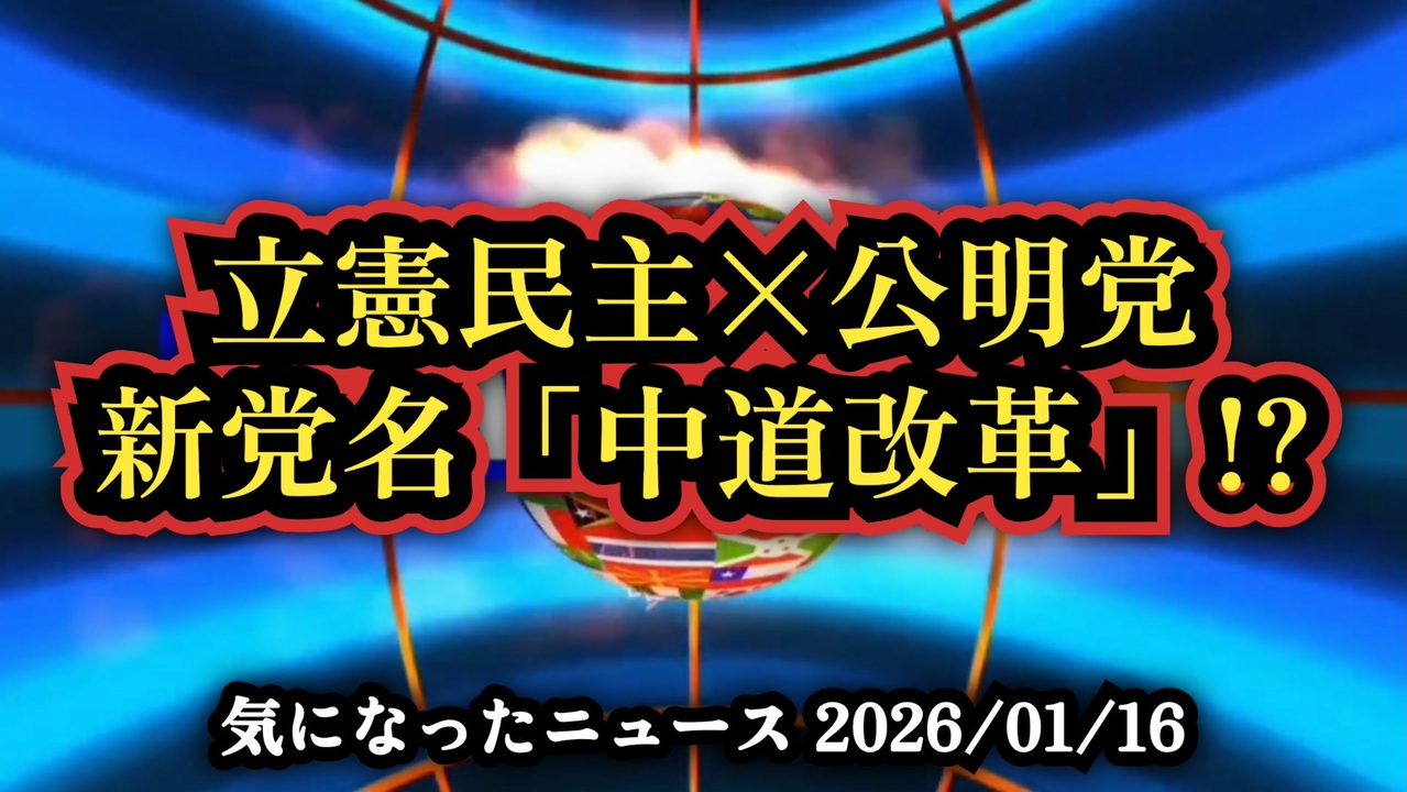 ◆立憲と公明の新党名は「中道改革」中道とは!?170議席構想<br><br>それ本当に中道?立憲×公明『中道改革』<br><br>【あらすじ】<br>立憲民主党と公明党が新党『中道改革』で合意。高市早苗政権に対抗する中道連合を掲げ、まずは衆議院から始動、全合流で約170議席規模に。だがネットでは政治、政党再編、選挙戦略を巡り『中道とは何か』との疑問が噴出。左派色や中国との距離感、与野党再編の思惑が交錯し、国会の勢力図は大きく動こうとしている。<br><br>◆今回の台本&詳細<a href="https://keiichiro8140.hatenablog.com/entry/260116660001" target="_blank" rel="noopener nofollow">https://keiichiro8140.hatenablog.com/entry/260116660001</a><br><br>◆これまでの動画<a href="https://x.gd/sPXoJ" target="_blank" rel="noopener nofollow">https://x.gd/sPXoJ</a><br><br>◆もしも(BAN)の時のためのマイリンク集<a href="https://lit.link/K-16_News44" target="_blank" rel="noopener nofollow">https://lit.link/K-16_News44</a><br><br>ご覧いただきありがとうございます<br>m(_ _)m<br><br>気になったニュース 2026/01/16<br><br />著作権、肖像権に配慮して作成しております。<br><br>◆気になったニュースの台本!?<br>メモ代わりに作った台本をそのままあげてます<br><a href="https://keiichiro8140.hatenablog.com/." target="_blank" rel="noopener nofollow">https://keiichiro8140.hatenablog.com/.</a><br><br><br>ここからはシリーズ紹介<br><br><br>◆ ワクチン解毒・デトックス<br><a href="https://x.gd/fZweg" target="_blank" rel="noopener nofollow">https://x.gd/fZweg</a><br><br>◆ウイリアム・マキス博士のがん治療(イベルメクチン・フェンベンダゾール等)<br><a href="https://x.gd/AtFYS" target="_blank" rel="noopener nofollow">https://x.gd/AtFYS</a><br><br>◆予防接種健康被害救済制度<br><a href="https://x.gd/0xK9x" target="_blank" rel="noopener nofollow">https://x.gd/0xK9x</a><br><br>◆気になったニュース #1501~<br><br>◆ 【ショートver】気になったニュース<br><a href="https://x.gd/7MxXC" target="_blank" rel="noopener nofollow">https://x.gd/7MxXC</a><br><br>◆ 気になったニュース #1001~<br><a href="https://x.gd/Lp8gv" target="_blank" rel="noopener nofollow">https://x.gd/Lp8gv</a><br><br>◆ 気になったニュース #501~<br><a href="https://x.gd/EmbS4" target="_blank" rel="noopener nofollow">https://x.gd/EmbS4</a><br><br>◆ 気になったニュース #1~#500<br><a href="https://x.gd/uPhNb" target="_blank" rel="noopener nofollow">https://x.gd/uPhNb</a><br><br>◆ X(旧Twitter)・テレグラムで気になった情報<br><a href="https://x.gd/YG6FT" target="_blank" rel="noopener nofollow">https://x.gd/YG6FT</a><br><br>◆ 日比谷5万人パレードデ⚪生放送アーカイブ動画<br><a href="https://x.gd/3CHJv" target="_blank" rel="noopener nofollow">https://x.gd/3CHJv</a><br><br>◆日比谷5万人パレード⚪モのマイリスト作ってみました<br><a href="https://nico.ms/mylist/76828848?ref=sp_other" target="_blank" rel="noopener nofollow">https://nico.ms/mylist/76828848?ref=sp_other</a><br><br>◆3.30 令和の百姓⚪⚪<br><a href="https://www.nicovideo.jp/series/511791?ref=garage_share_other" target="_blank" rel="noopener nofollow">https://www.nicovideo.jp/series/511791?ref=garage_share_other</a><br><br>◆ 及川幸久さんの【XNEWS】シリーズ<br><a href="https://x.gd/3k78K" target="_blank" rel="noopener nofollow">https://x.gd/3k78K</a><br><br>◆これまでの動画<a href="https://x.gd/sPXoJ" target="_blank" rel="noopener nofollow">https://x.gd/sPXoJ</a><br><br>◆もしも(BAN)の時のためのマイリンク集<a href="https://lit.link/K-16_News44" target="_blank" rel="noopener nofollow">https://lit.link/K-16_News44</a><br><br>