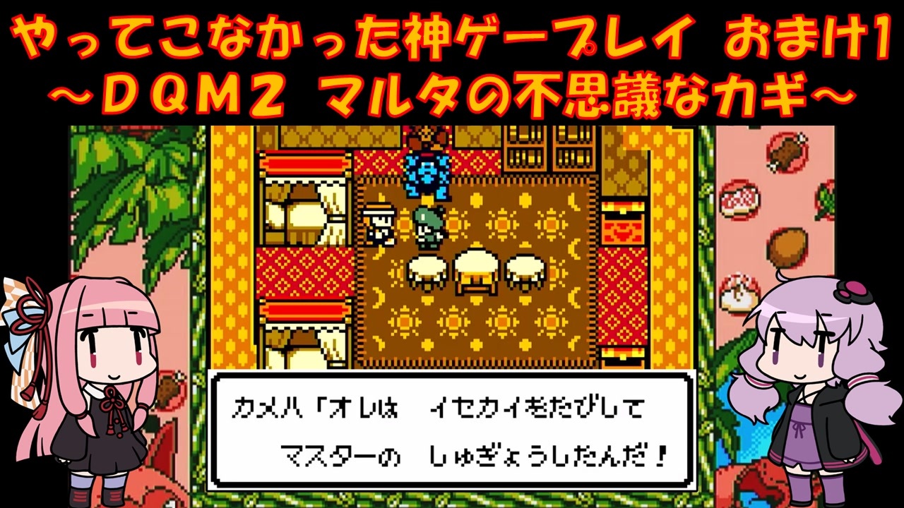 GBC ドラゴンクエストモンスターズ2 マルタの不思議なカギをプレイ<br>ゆかりさんはメジャーじゃないゲームをやる俺カッケー族だったのでドラクエをやったことがありませんでした(DSのⅤ以外)<br><br>ゆ:おまけの方が長くなる可能性が微レ存<br>茜:本編が短いしなぁ<br><br>PART1:<a href="https://www.nicovideo.jp/watch/sm45684209" target="_blank" rel="noopener nofollow">https://www.nicovideo.jp/watch/sm45684209</a><br><br>各DQシリーズ再生リスト<br><a href="https://garage.nicovideo.jp/niconico-garage/video/series/390298" target="_blank" rel="noopener nofollow">https://garage.nicovideo.jp/niconico-garage/video/series/390298</a><br><br><br>動画内で使用させていただいた素材<br>【イラスト】<br>結月ゆかり→山栗鼠様:<a href="https://seiga.nicovideo.jp/seiga/im5354179" target="_blank" rel="noopener nofollow">https://seiga.nicovideo.jp/seiga/im5354179</a><br>琴葉茜→山栗鼠様:<a href="https://seiga.nicovideo.jp/seiga/im5342445" target="_blank" rel="noopener nofollow">https://seiga.nicovideo.jp/seiga/im5342445</a><br><br>【音声】<br>A.I.Voice:琴葉茜<br><a href="https://aivoice.jp/product/kotonoha/" target="_blank" rel="noopener nofollow">https://aivoice.jp/product/kotonoha/</a><br><br>A.I.Voice:結月ゆかり<br><a href="https://aivoice.jp/product/yukari/" target="_blank" rel="noopener nofollow">https://aivoice.jp/product/yukari/</a><br><br>この動画で利用している株式会社スクウェア・エニックスを代表とする共同著作者が権利を所有する著作物及びスギヤマ工房有限会社が権利を所有する楽曲の転載・配布は禁止いたします。<br>© ARMOR PROJECT/BIRD STUDIO/SQUARE ENIX All Rights Reserved.<br>© SUGIYAMA KOBO