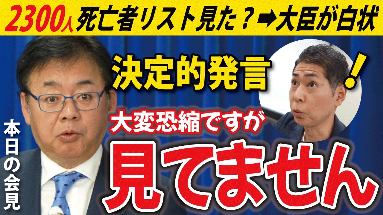 令和8月1月16日 厚生労働大臣記者会見<br>この動画は投稿者が現地で撮影したものを編集し公開しています。<br><br>❑藤江の講演等の予定はこちら<br><a href="https://nicochannel.jp/fujie/articles/news/ar3Rff79Fgycs6HaZGBAVbNN" target="_blank" rel="noopener nofollow">https://nicochannel.jp/fujie/articles/news/ar3Rff79Fgycs6HaZGBAVbNN</a><br><br>❑2025年4月22日発売 <br>「おかしくないですか⁉ 日本人・謎の大量死──知ってください、衝撃の事実」<br> <a href="https://amzn.to/424jnwO" target="_blank" rel="noopener nofollow">https://amzn.to/424jnwO</a><br><br>Amazonアソシエイトプログラムに参加しています。<br><br>―――――――――――――――――――――――――――――――<br><br>❑「世界を欺いた〇〇〇〇〇〇〇」(宝島社新書)<br><a href="https://amzn.to/3ymDfgr" target="_blank" rel="noopener nofollow">https://amzn.to/3ymDfgr</a><br>鳥集徹(著) 闇のダディ(著) 藤江成光(著)←私<br><br>―――――――――――――――――――――――――――――――<br><br>❑藤江の「真の」日本人増加計画(ニコニコチャンネル+)<br><a href="https://nicochannel.jp/fujie/" target="_blank" rel="noopener nofollow">https://nicochannel.jp/fujie/</a><br><br>❏藤江の活動を支援していただける方向け<br>【藤江支援口座】のご案内<br>住信SBIネット銀行 ミカン支店(店番号103)<br>口座番号 3107694<br>口座名義 フジエ マサミツ<br><br>――――――――――――――――――――――――――――――<br><br>地域と日本の存続のためニ!【藤江2ndチャンネル】<br><a href="https://www.youtube.com/channel/UCfBh4rv5UT7D-qR6KsoZrsA" target="_blank" rel="noopener nofollow">https://www.youtube.com/channel/UCfBh4rv5UT7D-qR6KsoZrsA</a><br><br>今こそ!三千年の底力【藤江3rdチャンネル】<br><a href="https://www.youtube.com/channel/UC5Yrsm8-X8nZj4uKgvE7CBw" target="_blank" rel="noopener nofollow">https://www.youtube.com/channel/UC5Yrsm8-X8nZj4uKgvE7CBw</a><br><br>四海兄弟【藤江4thチャンネル】<br><a href="https://www.youtube.com/channel/UCiyJNO57quj80Ysy7nOABvA" target="_blank" rel="noopener nofollow">https://www.youtube.com/channel/UCiyJNO57quj80Ysy7nOABvA</a><br><br>藤江のX(Twitter)<br><a href="https://twitter.com/JINKOUZOUKA_jp" target="_blank" rel="noopener nofollow">https://twitter.com/JINKOUZOUKA_jp</a>