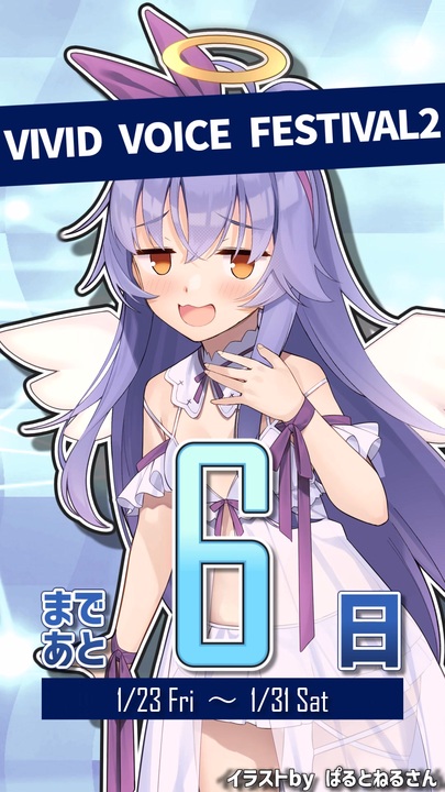 「VIVID VOICE FESTIVAL2」までのカウントダウン!<br>【1/23】の開催まであと6日だよ💜<br><br>■VIVID VOICE FESTIVAL2 開催期間<br>2026年1月23日(金)~1月31日(土)<br><br>■投稿祭の公式ページはこちら!<br><a href="https://site.nicovideo.jp/vividvoicefestival/" target="_blank" rel="noopener nofollow">https://site.nicovideo.jp/vividvoicefestival/</a><br><br>◆アルマちゃん@twitter<br><a href="https://twitter.com/arma_prg" target="_blank" rel="noopener nofollow">https://twitter.com/arma_prg</a><br><br>◆Lusty*Kiss Production 公式サイト<br><a href="https://production.lusty-kiss.com/" target="_blank" rel="noopener nofollow">https://production.lusty-kiss.com/</a><br><br>◆Lusty*Kiss Production YouTubeチャンネル<br><a href="https://www.youtube.com/channel/UCfxvv69Q0j0k2Rvm8x9vEhQ" target="_blank" rel="noopener nofollow">https://www.youtube.com/channel/UCfxvv69Q0j0k2Rvm8x9vEhQ</a><br><br>◆COEIROINK 公式サイト<br><a href="https://coeiroink.com/" target="_blank" rel="noopener nofollow">https://coeiroink.com/</a><br><br>------出演------<br>ディアちゃん:ディアちゃん@COEIROINK<br><a href="https://coeiroink.com/character/audio-character/dia-m" target="_blank" rel="noopener nofollow">https://coeiroink.com/character/audio-character/dia-m</a><br><br>------立ち絵------<br>ディアちゃん立ち絵素材(ぱるとねる 様)<br><a href="https://seiga.nicovideo.jp/seiga/im11721154" target="_blank" rel="noopener nofollow">https://seiga.nicovideo.jp/seiga/im11721154</a><br><br>------使用素材 ------<br>ディアちゃんの休日<br><a href="https://commons.nicovideo.jp/material/nc266496" target="_blank" rel="noopener nofollow">https://commons.nicovideo.jp/material/nc266496</a>