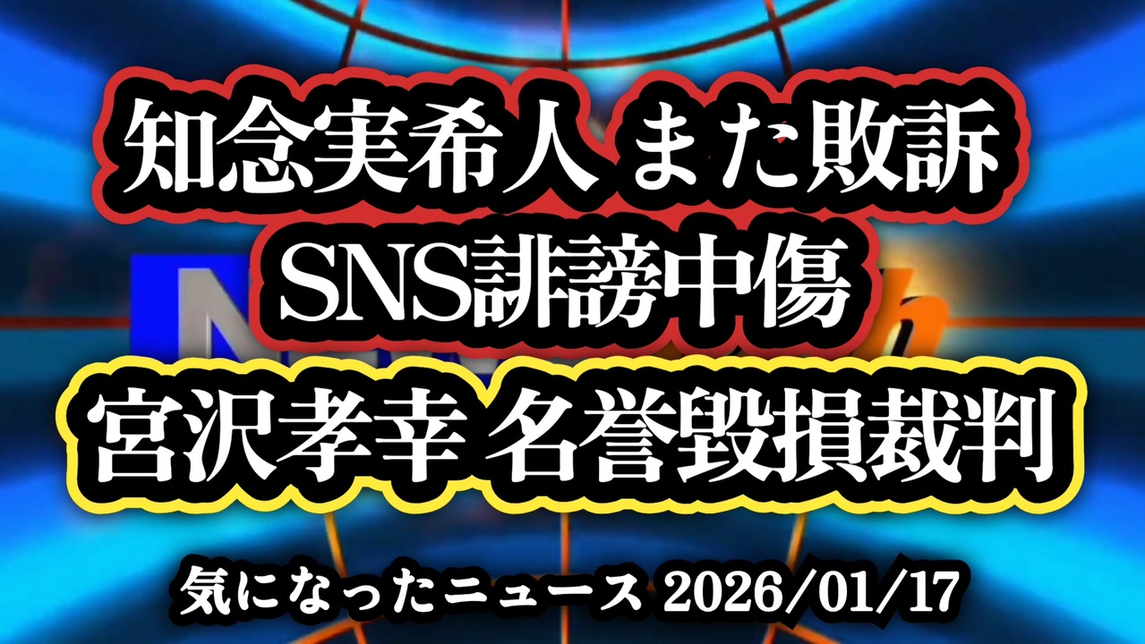 ◆東京地裁判決|宮沢孝幸が知念実希人に勝訴 ワクチン論争とSNS誹謗中傷の司法判断<br><br>知念実希人 また敗訴|宮沢孝幸 名誉毀損裁判の結末<br><br>あらすじ<br>東京地裁は2026年1月、元京都大学准教授・宮沢孝幸氏が小説家で医師の知念実希人氏を名誉毀損で訴えた裁判で宮沢氏勝訴と判断。ワクチンを巡る発言を『誤情報』と断じたX投稿が誹謗中傷に当たると認定し、16万5000円の賠償と投稿削除を命じた。コロナ、SNS、医師、言論、司法の線引きが改めて問われ、敗訴を重ねる知念氏の責任と影響力が社会問題として浮き彫りになった。<br><br>◆今回の台本&詳細<a href="https://keiichiro8140.hatenablog.com/entry/26011777111" target="_blank" rel="noopener nofollow">https://keiichiro8140.hatenablog.com/entry/26011777111</a><br><br>◆これまでの動画<a href="https://x.gd/sPXoJ" target="_blank" rel="noopener nofollow">https://x.gd/sPXoJ</a><br><br>◆もしも(BAN)の時のためのマイリンク集<a href="https://lit.link/K-16_News44" target="_blank" rel="noopener nofollow">https://lit.link/K-16_News44</a><br><br>ご覧いただきありがとうございます<br>m(_ _)m<br><br>気になったニュース 2026/01/17<br><br />著作権、肖像権に配慮して作成しております。<br><br>◆気になったニュースの台本!?<br>メモ代わりに作った台本をそのままあげてます<br><a href="https://keiichiro8140.hatenablog.com/." target="_blank" rel="noopener nofollow">https://keiichiro8140.hatenablog.com/.</a><br><br><br>ここからはシリーズ紹介<br><br><br>◆ ワクチン解毒・デトックス<br><a href="https://x.gd/fZweg" target="_blank" rel="noopener nofollow">https://x.gd/fZweg</a><br><br>◆ウイリアム・マキス博士のがん治療(イベルメクチン・フェンベンダゾール等)<br><a href="https://x.gd/AtFYS" target="_blank" rel="noopener nofollow">https://x.gd/AtFYS</a><br><br>◆予防接種健康被害救済制度<br><a href="https://x.gd/0xK9x" target="_blank" rel="noopener nofollow">https://x.gd/0xK9x</a><br><br>◆気になったニュース #1501~<br><br>◆ 【ショートver】気になったニュース<br><a href="https://x.gd/7MxXC" target="_blank" rel="noopener nofollow">https://x.gd/7MxXC</a><br><br>◆ 気になったニュース #1001~<br><a href="https://x.gd/Lp8gv" target="_blank" rel="noopener nofollow">https://x.gd/Lp8gv</a><br><br>◆ 気になったニュース #501~<br><a href="https://x.gd/EmbS4" target="_blank" rel="noopener nofollow">https://x.gd/EmbS4</a><br><br>◆ 気になったニュース #1~#500<br><a href="https://x.gd/uPhNb" target="_blank" rel="noopener nofollow">https://x.gd/uPhNb</a><br><br>◆ X(旧Twitter)・テレグラムで気になった情報<br><a href="https://x.gd/YG6FT" target="_blank" rel="noopener nofollow">https://x.gd/YG6FT</a><br><br>◆ 日比谷5万人パレードデ⚪生放送アーカイブ動画<br><a href="https://x.gd/3CHJv" target="_blank" rel="noopener nofollow">https://x.gd/3CHJv</a><br><br>◆日比谷5万人パレード⚪モのマイリスト作ってみました<br><a href="https://nico.ms/mylist/76828848?ref=sp_other" target="_blank" rel="noopener nofollow">https://nico.ms/mylist/76828848?ref=sp_other</a><br><br>◆3.30 令和の百姓⚪⚪<br><a href="https://www.nicovideo.jp/series/511791?ref=garage_share_other" target="_blank" rel="noopener nofollow">https://www.nicovideo.jp/series/511791?ref=garage_share_other</a><br><br>◆ 及川幸久さんの【XNEWS】シリーズ<br><a href="https://x.gd/3k78K" target="_blank" rel="noopener nofollow">https://x.gd/3k78K</a><br><br>◆これまでの動画<a href="https://x.gd/sPXoJ" target="_blank" rel="noopener nofollow">https://x.gd/sPXoJ</a><br><br>◆もしも(BAN)の時のためのマイリンク集<a href="https://lit.link/K-16_News44" target="_blank" rel="noopener nofollow">https://lit.link/K-16_News44</a><br><br>