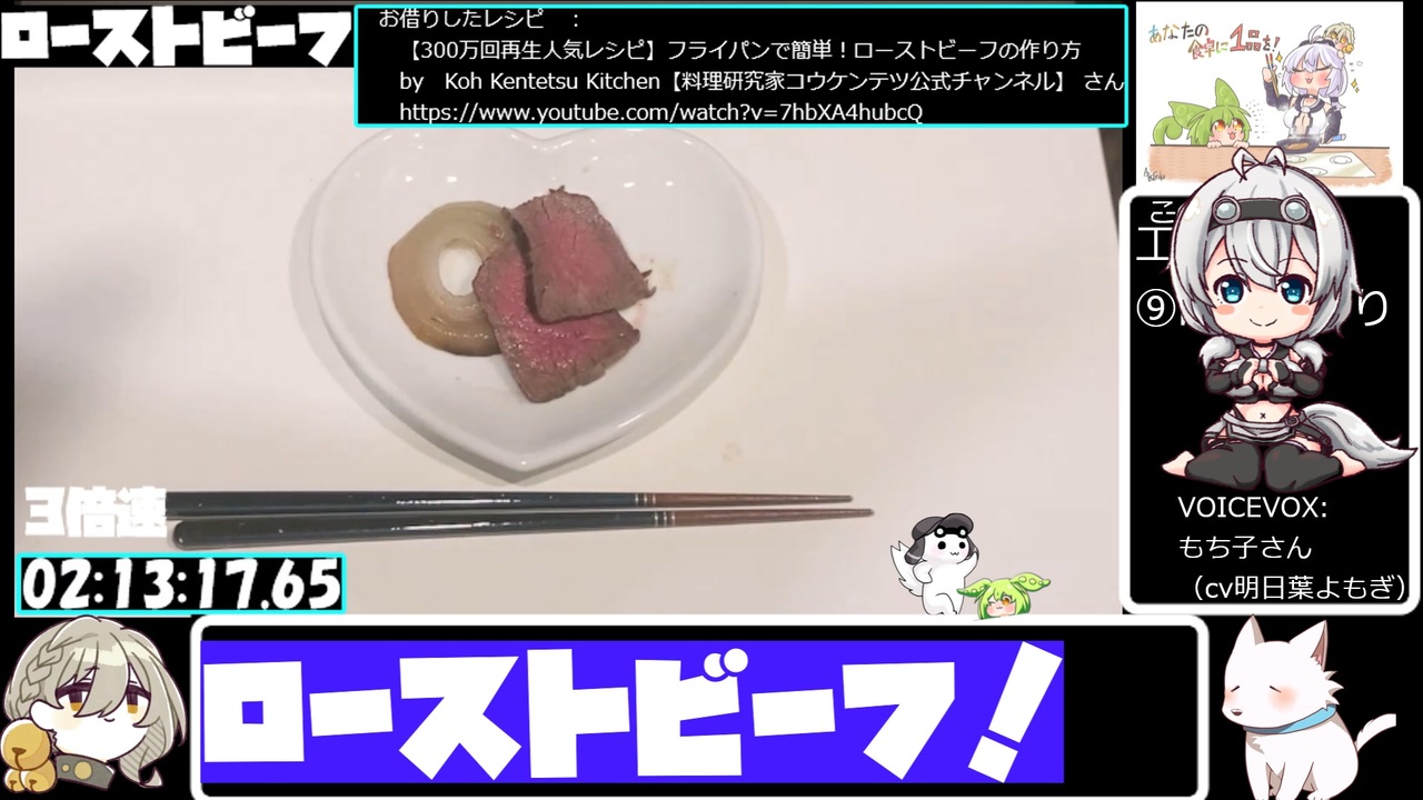 料理初心者が二回目に作る料理にチャレンジします!<br><br>参考にしたレシピはこちら<br> 【300万回再生人気レシピ】フライパンで簡単!ローストビーフの作り方<br> by Koh Kentetsu Kitchen【料理研究家コウケンテツ公式チャンネル】 さん<br> <a href="https://www.youtube.com/watch?v=7hbXA4hubcQ" target="_blank" rel="noopener nofollow">https://www.youtube.com/watch?v=7hbXA4hubcQ</a><br /><br>編集に使用させていただいているものは、プロフィールみてね!<br><a href="https://www.nicovideo.jp/user/311366" target="_blank" rel="noopener nofollow">https://www.nicovideo.jp/user/311366</a><br><br>読み上げ:VOICEVOX もち子(cv明日葉よもぎ)、ずんだもん、四国めたん、青山龍星、WhiteCUL、伊織弓鶴、COEIROINK:猫米茶<br><br><strong>過去の動画にコメント、いいね!、ギフト、広告、フォロー、マイリストありがとうございました!</strong><br><br>とり料理祭ありがとうございました!<br>2023参加作品はこちら ⇒ <a href="https://www.nicovideo.jp/mylist/75430531" target="_blank" rel="noopener nofollow">https://www.nicovideo.jp/mylist/75430531</a><br>2024冬参加作品はこちら ⇒ <a href="https://www.nicovideo.jp/mylist/75862737" target="_blank" rel="noopener nofollow">https://www.nicovideo.jp/mylist/75862737</a><br>2024夏参加作品はこちら ⇒ <a href="https://www.nicovideo.jp/mylist/76572716" target="_blank" rel="noopener nofollow">https://www.nicovideo.jp/mylist/76572716</a><br>2025冬参加作品はこちら ⇒ <a href="https://www.nicovideo.jp/mylist/77171241" target="_blank" rel="noopener nofollow">https://www.nicovideo.jp/mylist/77171241</a><br>2025夏参加作品はこちら ⇒ <a href="https://www.nicovideo.jp/mylist/77600849" target="_blank" rel="noopener nofollow">https://www.nicovideo.jp/mylist/77600849</a><br><br>このその日ごとになんか出す定食屋か駄菓子屋のごとき動画を継続して投稿するために<br>スポンサーをひっそり募集しております、あなたも一口いかが?<br><a href="https://creator-support.nicovideo.jp/registration/311366" target="_blank" rel="noopener nofollow">https://creator-support.nicovideo.jp/registration/311366</a>