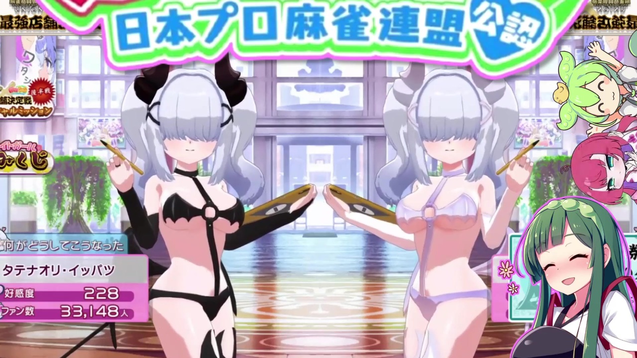 <span style="color: #0000ff;"><strong>タテナオリ・イッパツ</strong></span>ちゃんの新カットイン「<span style="color: #ff00ff;"><strong>りりぃコス</strong></span>」を引いて3人打ちで対局していきます。<br><br>変態企業KONAMIは謝罪しろ!!!<br><br> このチャンネルではVOICEPEAK『東北ずん子』&『ずんだもん』と一緒に、「麻雀ファイトガール」の三人麻雀をメインに実況しています。麻雀ファイトガールに興味がある方、麻雀自体をよく知らないという方もこのゲームに興味を持って頂けるような動画作りを目指していますのでよろしくお願いします!<br><br>それでは、よき麻雀ファイトガールを!<br>【麻雀ファイトガール/VOICEPEAK東北ずん子実況/Part37】<br><br>Part36 <a href="https://www.nicovideo.jp/watch/sm45818384" class="watch">sm45818384</a><br>Part38 <a href="https://www.nicovideo.jp/watch/sm45885701" class="watch">sm45885701</a><br><br>■Part1 <a href="https://www.nicovideo.jp/watch/sm44822565" class="watch">sm44822565</a><br><br><span style="color: #ff0000;">■MFGフレンド登録リンク</span><br><a href="https://p.eagate.573.jp/game/mfg/1/playdata/friend_search.html?code=668412238039" target="_blank" rel="noopener nofollow">https://p.eagate.573.jp/game/mfg/1/playdata/friend_search.html?code=668412238039</a><br><br>■使用ソフト<br>・VOICEPEAK『東北ずん子』『ずんだもん』『フリモメン』<br><br>■お借りした素材<br>【立ち絵】<br>・東北ずん子【キャラ素材】blueberry 様<br><a href="https://seiga.nicovideo.jp/seiga/im5774001" target="_blank" rel="noopener nofollow">https://seiga.nicovideo.jp/seiga/im5774001</a><br>・ずんだもん立ち絵素材 坂本アヒル 様<br><a href="https://seiga.nicovideo.jp/seiga/im10788496" target="_blank" rel="noopener nofollow">https://seiga.nicovideo.jp/seiga/im10788496</a><br>【ジングル、効果音】<br>・ジングルおよび効果音<br> OtoLogic様 <a href="https://otologic.jp/" target="_blank" rel="noopener nofollow">https://otologic.jp/</a><br> 効果音ラボ様 <a href="https://soundeffect-lab.info/" target="_blank" rel="noopener nofollow">https://soundeffect-lab.info/</a><br>【その他】<br><a href="https://www.nicovideo.jp/watch/sm40370742" class="watch">sm40370742</a> - 腰振りヘコヘコずんだもん!BB.mp4<br /><br>■投稿者(ひだまりP)のSNSリンク<br>・X(旧Twitter) - <a href="https://x.com/Hidamarie_win" target="_blank" rel="noopener nofollow">https://x.com/Hidamarie_win</a><br>・マシュマロ(ふつおた歓迎) - <a href="https://marshmallow-qa.com/hidamarie_win" target="_blank" rel="noopener nofollow">https://marshmallow-qa.com/hidamarie_win</a><br>・ブログ『ひだまりPはこう語った』 - <a href="https://www.hidamarie.net/" target="_blank" rel="noopener nofollow">https://www.hidamarie.net/</a><br>・note - <a href="https://note.com/hidamarie_win" target="_blank" rel="noopener nofollow">https://note.com/hidamarie_win</a><br>・Youtube(同じ動画をアップしています) - <a href="https://www.youtube.com/@hidamarie_win" target="_blank" rel="noopener nofollow">https://www.youtube.com/@hidamarie_win</a>