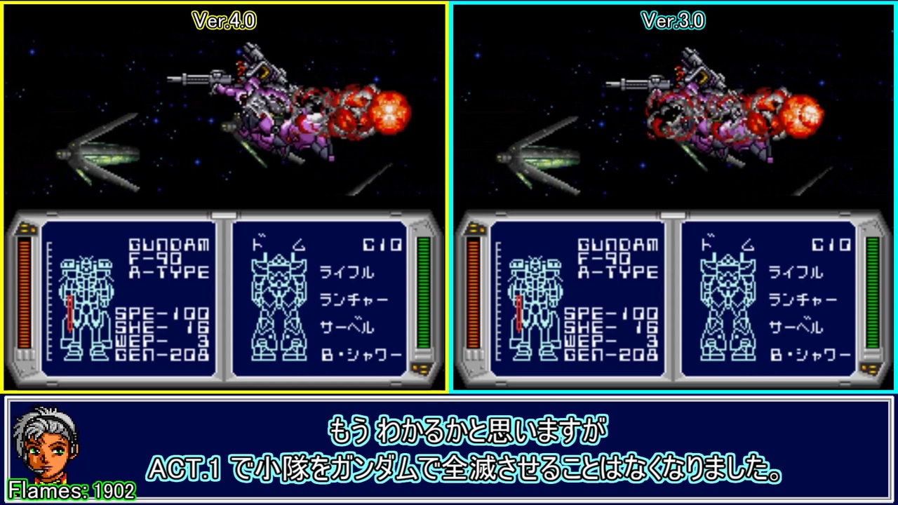 あけましておめでとうございます(大遅刻)。<br><br>入れ忘れ解説:<br> 攻撃回数は これ以上減りません。<br> なぜならステータスが下がるからです。<br> 参照元→<a href="https://www.nicovideo.jp/watch/sm45232633" class="watch">sm45232633</a> もしくは下記スプレッドシートまで。<br><br>簡易報告:<br> 敵の攻撃乱数の調査が完了しました。<br> 隊長機による攻撃頻度の増加および命中率の増加はありませんでした。<br> 詳細はまたそのうちに。<br><br>ACT.1計測区間:ゲーム起動~セーブ後暗転まで<br> frames:8170 / re-recording:464<br><br>TAS一覧:<a href="https://www.nicovideo.jp/series/532632" target="_blank" rel="noopener">series/532632</a><br>偉大な先駆者様:<a href="https://www.nicovideo.jp/watch/sm12433909" class="watch">sm12433909</a><br><br>RTA一覧:<a href="https://www.nicovideo.jp/series/492029" target="_blank" rel="noopener">series/492029</a><br><br>プレイ環境:Snes9x 1.60<br>編集環境:AviUtl<br /><br>↓投稿者お手製フォーミュラー戦記の攻略本(仮)最終更新日:2026/1/6<br><a href="https://docs.google.com/spreadsheets/d/1DQnb7GurKi1y6yCNLNoHER9v3d-p6vZwB3bxt_ykGj8" target="_blank" rel="noopener nofollow">https://docs.google.com/spreadsheets/d/1DQnb7GurKi1y6yCNLNoHER9v3d-p6vZwB3bxt_ykGj8</a><br><br>※いつも再生、コメント、いいね、広告、マイリスト、フォローありがとうございます。