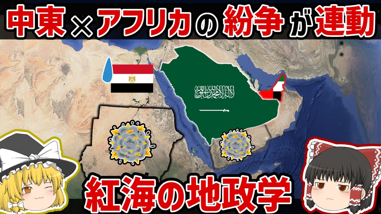 <span style="font-size: 18px;">世界は繋がりあっている</span><br><br><span style="font-size: 18px;"><strong>中東とアフリカの場合「紅海」によって...</strong></span><br><br>てことで今回は<span style="color: #ff0000;"><strong>中東×アフリカ!</strong></span><br>紅海で繋がり連動する両地域の情勢について解説してみました!<br><br><br>ニコニコch始めました→<a href="https://ch.nicovideo.jp/africaoshi" target="_blank" rel="noopener nofollow">https://ch.nicovideo.jp/africaoshi</a><br><br>◆Twitter <a href="https://twitter.com/AfrikaanerMaris" target="_blank" rel="noopener nofollow">https://twitter.com/AfrikaanerMaris</a> <br>◆マイリスト <a href="https://www.nicovideo.jp/mylist/73354161" target="_blank" rel="noopener nofollow">https://www.nicovideo.jp/mylist/73354161</a><br>