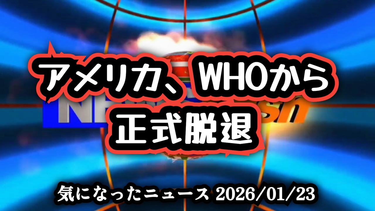 ◆アメリカ、WHOから正式脱退<br><br>トランプ、正式にWHO脱退<br><br>【あらすじ)】<br>トランプ大統領の決断により、アメリカはWHOから正式に脱退した。WHO、トランプ、米国、脱退、ワクチン、ゲイツ財団、GAVI、国際政治、公衆衛生、資金、影響力を軸に、世界保健の構造は大きく変わろうとしている。最大拠出国の離脱は、WHOの意思決定と加盟国の立場に直接的な影響を与える。これは思想ではなく、資金と権限の現実を問う問題である。<br><br>◆今回の台本&詳細<a href="https://keiichiro8140.hatenablog.com/entry/26012333111" target="_blank" rel="noopener nofollow">https://keiichiro8140.hatenablog.com/entry/26012333111</a><br><br>◆これまでの動画<a href="https://x.gd/sPXoJ" target="_blank" rel="noopener nofollow">https://x.gd/sPXoJ</a><br><br>◆もしも(BAN)の時のためのマイリンク集<a href="https://lit.link/K-16_News44" target="_blank" rel="noopener nofollow">https://lit.link/K-16_News44</a><br><br>ご覧いただきありがとうございます<br>m(_ _)m<br><br>気になったニュース 2026/01/23<br><br />著作権、肖像権に配慮して作成しております。<br><br>◆気になったニュースの台本!?<br>メモ代わりに作った台本をそのままあげてます<br><a href="https://keiichiro8140.hatenablog.com/." target="_blank" rel="noopener nofollow">https://keiichiro8140.hatenablog.com/.</a><br><br><br>ここからはシリーズ紹介<br><br><br>◆ ワクチン解毒・デトックス<br><a href="https://x.gd/fZweg" target="_blank" rel="noopener nofollow">https://x.gd/fZweg</a><br><br>◆ウイリアム・マキス博士のがん治療(イベルメクチン・フェンベンダゾール等)<br><a href="https://x.gd/AtFYS" target="_blank" rel="noopener nofollow">https://x.gd/AtFYS</a><br><br>◆予防接種健康被害救済制度<br><a href="https://x.gd/0xK9x" target="_blank" rel="noopener nofollow">https://x.gd/0xK9x</a><br><br>◆気になったニュース #1501~<br><br>◆ 【ショートver】気になったニュース<br><a href="https://x.gd/7MxXC" target="_blank" rel="noopener nofollow">https://x.gd/7MxXC</a><br><br>◆ 気になったニュース #1001~<br><a href="https://x.gd/Lp8gv" target="_blank" rel="noopener nofollow">https://x.gd/Lp8gv</a><br><br>◆ 気になったニュース #501~<br><a href="https://x.gd/EmbS4" target="_blank" rel="noopener nofollow">https://x.gd/EmbS4</a><br><br>◆ 気になったニュース #1~#500<br><a href="https://x.gd/uPhNb" target="_blank" rel="noopener nofollow">https://x.gd/uPhNb</a><br><br>◆ X(旧Twitter)・テレグラムで気になった情報<br><a href="https://x.gd/YG6FT" target="_blank" rel="noopener nofollow">https://x.gd/YG6FT</a><br><br>◆ 日比谷5万人パレードデ⚪生放送アーカイブ動画<br><a href="https://x.gd/3CHJv" target="_blank" rel="noopener nofollow">https://x.gd/3CHJv</a><br><br>◆日比谷5万人パレード⚪モのマイリスト作ってみました<br><a href="https://nico.ms/mylist/76828848?ref=sp_other" target="_blank" rel="noopener nofollow">https://nico.ms/mylist/76828848?ref=sp_other</a><br><br>◆3.30 令和の百姓⚪⚪<br><a href="https://www.nicovideo.jp/series/511791?ref=garage_share_other" target="_blank" rel="noopener nofollow">https://www.nicovideo.jp/series/511791?ref=garage_share_other</a><br><br>◆ 及川幸久さんの【XNEWS】シリーズ<br><a href="https://x.gd/3k78K" target="_blank" rel="noopener nofollow">https://x.gd/3k78K</a><br><br>◆これまでの動画<a href="https://x.gd/sPXoJ" target="_blank" rel="noopener nofollow">https://x.gd/sPXoJ</a><br><br>◆もしも(BAN)の時のためのマイリンク集<a href="https://lit.link/K-16_News44" target="_blank" rel="noopener nofollow">https://lit.link/K-16_News44</a><br><br>