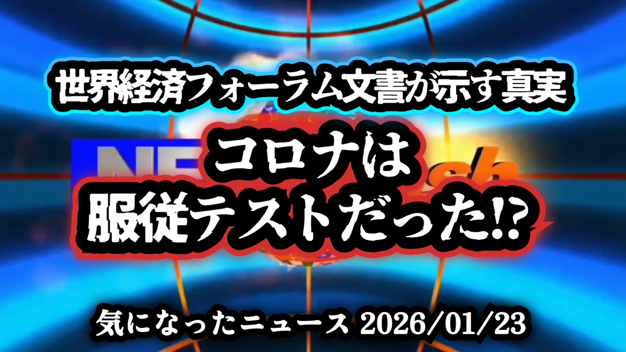 ◆世界経済フォーラム文書が示す真実 コロナは服従テストだった?<br><br>あらすじ<br>世界経済フォーラムが示したある文書が、今あらためて注目を集めている。<br>そこに書かれているのは、世界経済フォーラムやWEFが描くマイカーボン(個人の行動を数値化する環境管理の仕組み)、スマートシティ、そして持続可能な都市の未来像。その中で語られる「社会的責任」とは何を意味するのか。<br>パンデミック対応の名のもとに起きた行動変容、接触追跡アプリの受け入れ、デジタル管理社会への移行は偶然だったのか。それとも必然だったのか。<br><br><a href="https://x.com/i/status/2003977856372924901" target="_blank" rel="noopener nofollow">https://x.com/i/status/2003977856372924901</a><br>【接種前比の超過死亡者数が861,251人に】<br><br>◆今回の台本&詳細<a href="https://keiichiro8140.hatenablog.com/entry/26012333999" target="_blank" rel="noopener nofollow">https://keiichiro8140.hatenablog.com/entry/26012333999</a><br><br>◆これまでの動画<a href="https://x.gd/sPXoJ" target="_blank" rel="noopener nofollow">https://x.gd/sPXoJ</a><br><br>◆もしも(BAN)の時のためのマイリンク集<a href="https://lit.link/K-16_News44" target="_blank" rel="noopener nofollow">https://lit.link/K-16_News44</a><br><br>ご覧いただきありがとうございます<br>m(_ _)m <br><br>気になったニュース 2026/01/23<br><br />著作権、肖像権に配慮して作成しております。<br><br>◆気になったニュースの台本!?<br>メモ代わりに作った台本をそのままあげてます<br><a href="https://keiichiro8140.hatenablog.com/." target="_blank" rel="noopener nofollow">https://keiichiro8140.hatenablog.com/.</a><br><br><br>ここからはシリーズ紹介<br><br><br>◆ ワクチン解毒・デトックス<br><a href="https://x.gd/fZweg" target="_blank" rel="noopener nofollow">https://x.gd/fZweg</a><br><br>◆ウイリアム・マキス博士のがん治療(イベルメクチン・フェンベンダゾール等)<br><a href="https://x.gd/AtFYS" target="_blank" rel="noopener nofollow">https://x.gd/AtFYS</a><br><br>◆予防接種健康被害救済制度<br><a href="https://x.gd/0xK9x" target="_blank" rel="noopener nofollow">https://x.gd/0xK9x</a><br><br>◆気になったニュース #1501~<br><br>◆ 【ショートver】気になったニュース<br><a href="https://x.gd/7MxXC" target="_blank" rel="noopener nofollow">https://x.gd/7MxXC</a><br><br>◆ 気になったニュース #1001~<br><a href="https://x.gd/Lp8gv" target="_blank" rel="noopener nofollow">https://x.gd/Lp8gv</a><br><br>◆ 気になったニュース #501~<br><a href="https://x.gd/EmbS4" target="_blank" rel="noopener nofollow">https://x.gd/EmbS4</a><br><br>◆ 気になったニュース #1~#500<br><a href="https://x.gd/uPhNb" target="_blank" rel="noopener nofollow">https://x.gd/uPhNb</a><br><br>◆ X(旧Twitter)・テレグラムで気になった情報<br><a href="https://x.gd/YG6FT" target="_blank" rel="noopener nofollow">https://x.gd/YG6FT</a><br><br>◆ 日比谷5万人パレードデ⚪生放送アーカイブ動画<br><a href="https://x.gd/3CHJv" target="_blank" rel="noopener nofollow">https://x.gd/3CHJv</a><br><br>◆日比谷5万人パレード⚪モのマイリスト作ってみました<br><a href="https://nico.ms/mylist/76828848?ref=sp_other" target="_blank" rel="noopener nofollow">https://nico.ms/mylist/76828848?ref=sp_other</a><br><br>◆3.30 令和の百姓⚪⚪<br><a href="https://www.nicovideo.jp/series/511791?ref=garage_share_other" target="_blank" rel="noopener nofollow">https://www.nicovideo.jp/series/511791?ref=garage_share_other</a><br><br>◆ 及川幸久さんの【XNEWS】シリーズ<br><a href="https://x.gd/3k78K" target="_blank" rel="noopener nofollow">https://x.gd/3k78K</a><br><br>◆これまでの動画<a href="https://x.gd/sPXoJ" target="_blank" rel="noopener nofollow">https://x.gd/sPXoJ</a><br><br>◆もしも(BAN)の時のためのマイリンク集<a href="https://lit.link/K-16_News44" target="_blank" rel="noopener nofollow">https://lit.link/K-16_News44</a><br><br>