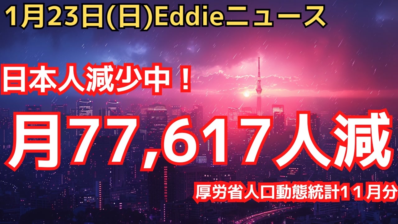 参考<br><a href="https://www.mhlw.go.jp/toukei/saikin/hw/jinkou/geppo/s2025/dl/202511.pdf" target="_blank" rel="noopener nofollow">https://www.mhlw.go.jp/toukei/saikin/hw/jinkou/geppo/s2025/dl/202511.pdf</a><br />Eddieと申します。<br>少し引棒めいたニュースを集めて喋っています。<br>よろしくお願いします。<br><br>23時過ぎYouTubeライブ配信(マイペース配信中)<br>「Eddieのホンマやと思うニュース3」<br><a href="https://www.youtube.com/channel/UCKaftD6X-qeHC5Vd9CMCedw" target="_blank" rel="noopener nofollow">https://www.youtube.com/channel/UCKaftD6X-qeHC5Vd9CMCedw</a><br><br>ニコ生は毎週土曜21時半〜(もしくは日曜21時半〜)<br><br>twitter<br>@Eddie2travel<br><br>YouTubeライブ配信1000回記念グッズなど販売中<br><a href="https://suzuri.jp/Eddie-Homma3" target="_blank" rel="noopener nofollow">https://suzuri.jp/Eddie-Homma3</a><br><br>