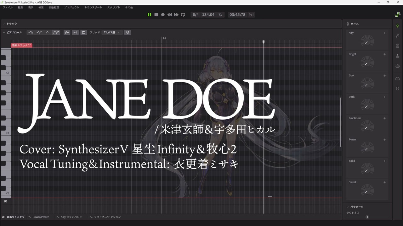 毎年恒例調声晒し祭がきたぜ<br><br>やっといんふぃにちゃんをメイン歌唱に使ったやつをお出しできました<br>結構前に言語の壁に翻弄され満身創痍になりながらお迎えしてたのに全然使えてなかったのでね…<br>ちなみに今はSynthV 2の牧心くん発売に合わせて海外向けの販売サイトができたので、かなり楽にお求めいただけますわよ(ダイマ)<br><br>----<br>調声晒し投稿祭2026 ソング部門参加作品<br>自由曲「JANE DOE/米津玄師, 宇多田ヒカル」<br><a href="https://youtu.be/sPLqsLsooJY" target="_blank" rel="noopener nofollow">https://youtu.be/sPLqsLsooJY</a><br>----<br><br>*カバー歌唱<br>Synthesizer V 星尘 Infinity (Stardust Infinity)<br>Synthesizer V 2 牧心 (Muxin)<br><br>調声・inst作成:衣更着ミサキ<br><br><br />過去動画全部まとめ: <a href="https://www.nicovideo.jp/mylist/25901019" target="_blank" rel="noopener">mylist/25901019</a><br>Twitter(X): <a href="https://x.com/asakiyume168" target="_blank" rel="noopener nofollow">https://x.com/asakiyume168</a>