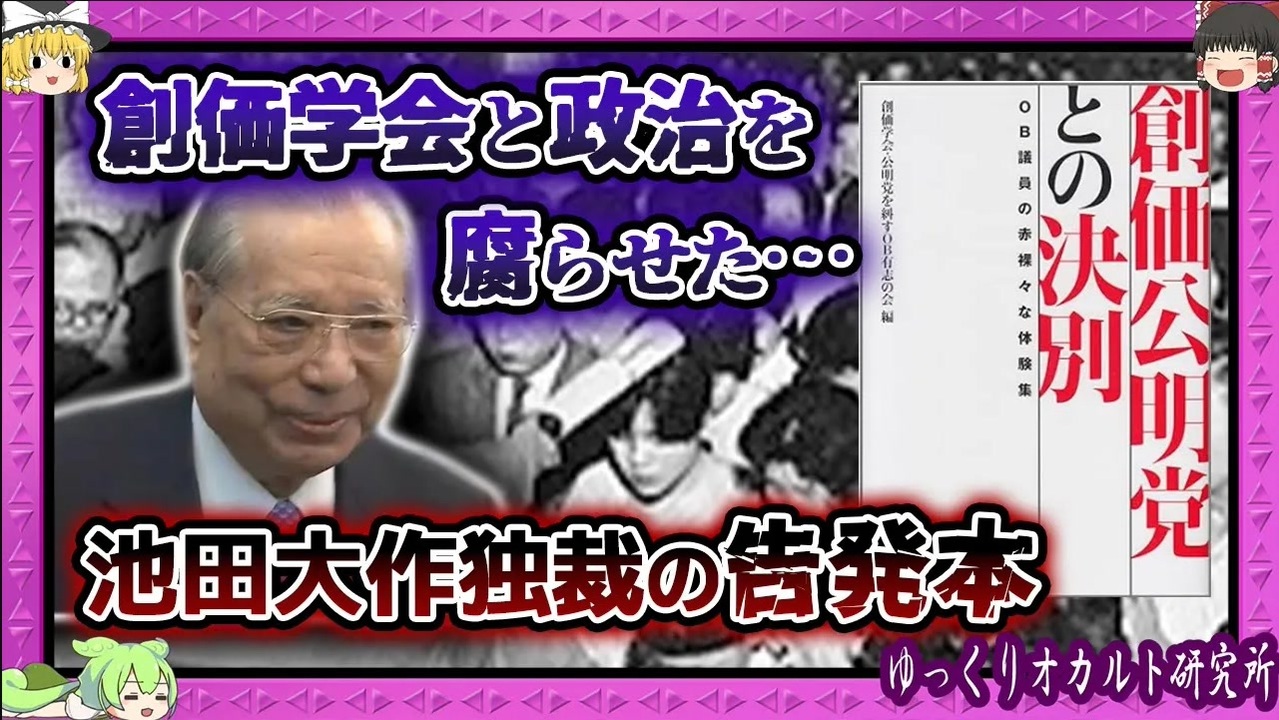 創価学会・公明党を糾すOB有志の会」が、池田大作氏の所業を告発する本をまとめました。池田氏の独裁、神格化のための名誉教授職・勲章の収集、そして異議を唱えるものには聖教新聞などを使った容赦ない誹謗中傷…尾行・脅迫等々、実際に受けた被害を綴っています。人生の数十年を捧げた人たちのやるせない思いを【 ゆっくり解説 創価学会 】シリーズとして、ゆっくり茶番劇でお伝えします。 00:00 イントロダクション 00:39 公明OB達の一揆 03:33 集まった悲痛な声 「脅しと尾行」 08:21 先鋭化する学会 12:29 不審な火災 15:05 超どうでもいい話 ★関連動画はこちらから! <a href="https://youtube.com/@ゆっくりオカルト研究所" target="_blank" rel="noopener nofollow">https://youtube.com/@ゆっくりオカルト研究所</a> ★気まずすぎる動画はメンバーシップで…→ <a href="https://www.youtube.com/channel/UCirxRvghHohWx9iWLKYuceg/join" target="_blank" rel="noopener nofollow">https://www.youtube.com/channel/UCirxRvghHohWx9iWLKYuceg/join</a> ★規制されてしまった動画・オリジナル動画等あり!裏オカ研(サブスク):再生リスト「裏のアレ」→ <a href="https://mediable.jp/playlists/c98143a6-4a92-4337-9325-e15eadaab6e2" target="_blank" rel="noopener nofollow">https://mediable.jp/playlists/c98143a6-4a92-4337-9325-e15eadaab6e2</a> #創価学会#池田大作#公明党#ゆっくりオカルト研究所#ゆっくり解説