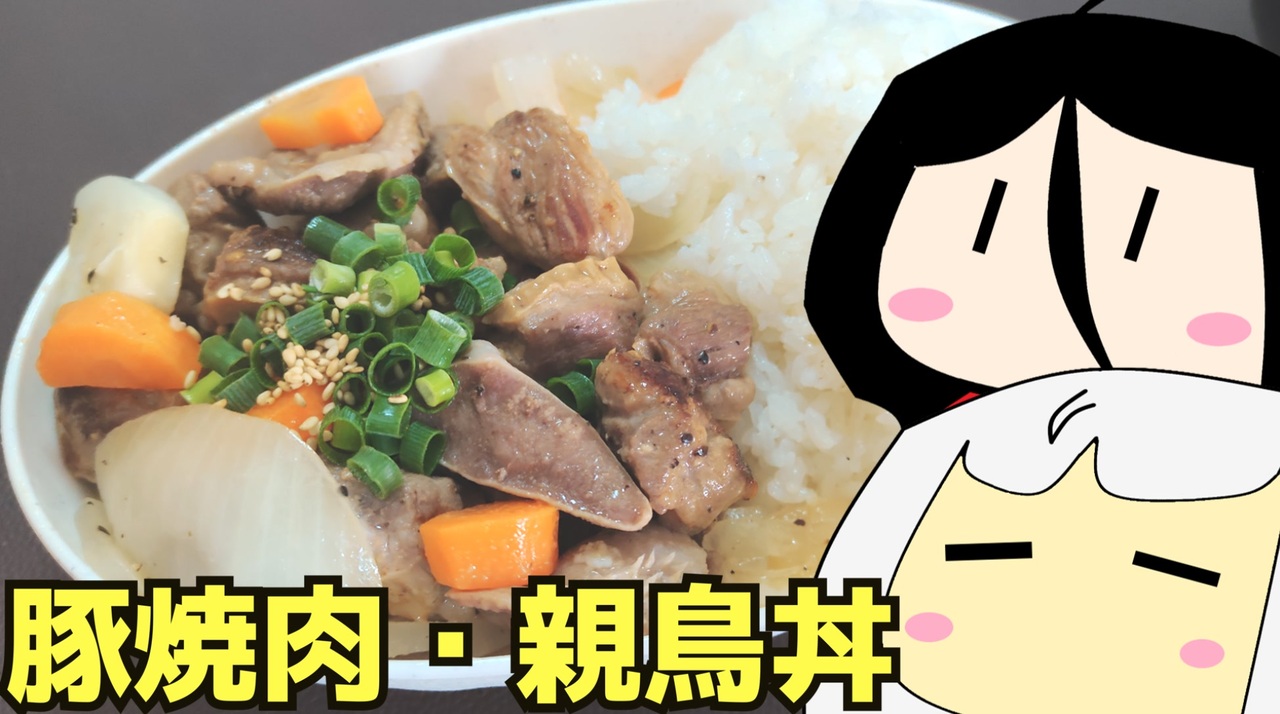 次→<a href="https://www.nicovideo.jp/watch/sm45890239" class="watch">sm45890239</a> (豚トマト煮+トマトチーズクリームうどん)<br><br>親子丼→<a href="https://www.nicovideo.jp/watch/sm45453485" class="watch">sm45453485</a><br><br>前→<a href="https://www.nicovideo.jp/watch/sm45877903" class="watch">sm45877903</a> (ギョーザその3 +豚骨醤油ラーメン)<br><br>どうも、私です。<br>半額の豚ハラミと豚タン、親鳥の親子丼を作って焼きラーメンと食べるよ~<br>マイリスト→<a href="https://www.nicovideo.jp/mylist/63910205" target="_blank" rel="noopener">mylist/63910205</a> (ラーメン食べ歩き日本一周 グルメ 車 その他)<br><br>~~~クレジット~~~<br>ボイスロイド・ソフトウェアトーク<br>VOICEROID2 : 紲星あかり<br>VOICEVOX: 中国うさぎ<br><br>YMM4 ゆっくりMovieMaker4<br><a href="https://manjubox.net/ymm4/" target="_blank" rel="noopener nofollow">https://manjubox.net/ymm4/</a><br><br>BGM<br>After-Five<br><a href="https://dova-s.jp/bgm/play22169.html" target="_blank" rel="noopener nofollow">https://dova-s.jp/bgm/play22169.html</a><br>ーーーーーーーーーーーー