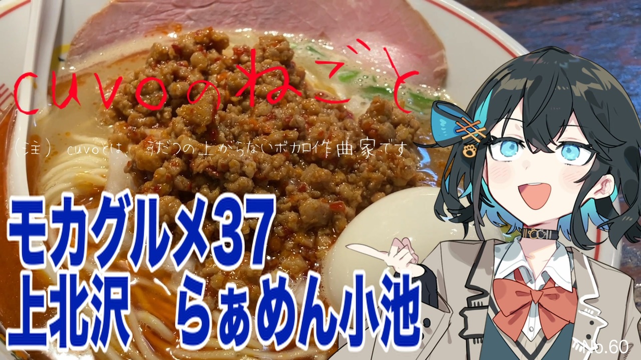 みなさん、こんにちは!<br>cuvoのねごと、第60回です!<br><br>シリーズ「モカグルメ」第37弾でーす<br><br>今回は、京王線の上北沢駅にある<br>「らぁめん小池」に行ってきましたよー<br><br>台湾ラーメンなるものを食べてきましたよー♪<br>煮干しと挽肉の融合が病みつきになりそうです!<br><br>「これが至福ってやつですかぁ!」<br><br>気になった方は、ぜひ行ってみてくださいね!<br><br><br>ーーーーーーー<br>▼Xで発信中!cuvoのねごと<br><a href="https://twitter.com/cuvo_jpn" target="_blank" rel="noopener nofollow">https://twitter.com/cuvo_jpn</a><br><br><br>▼エンディングテーマ<br>「飲みに行こう」<br>曲:cuvo / 詞:vie<br>歌:seven(neutrino)<br><br>↓ニコ動<br><a href="https://nico.ms/sm41946436" target="_blank" rel="noopener nofollow">https://nico.ms/sm41946436</a><br><br>↓YouTube<br><a href="https://youtu.be/aJWyRuT7cGk" target="_blank" rel="noopener nofollow">https://youtu.be/aJWyRuT7cGk</a><br><br>ーーーーーーーーーーーーーーーーー<br><br />ニコニコ動画(cuvo:ボカロ曲)<br><a href="https://www.nicovideo.jp/user/123099454/video" target="_blank" rel="noopener nofollow">https://www.nicovideo.jp/user/123099454/video</a><br><br>YouTube<br><a href="https://www.youtube.com/channel/UCeyFWGAsM1u0r7XpT0yeDPA/" target="_blank" rel="noopener nofollow">https://www.youtube.com/channel/UCeyFWGAsM1u0r7XpT0yeDPA/</a><br><br>X(旧Twitter)<br><a href="https://twitter.com/cuvo_jpn" target="_blank" rel="noopener nofollow">https://twitter.com/cuvo_jpn</a><br><br>Instagram<br><a href="https://www.instagram.com/cuvo_jpn/" target="_blank" rel="noopener nofollow">https://www.instagram.com/cuvo_jpn/</a>