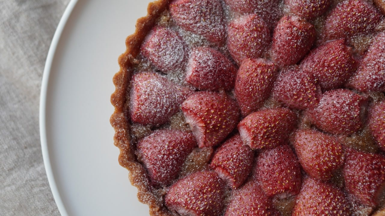 シンプルで簡単ないちごの焼きこみタルト。<br>工程も少ないので初めてのタルト作りにもお勧めです。<br><br><br>◆生地の詳しい作り方はこちら↓<br><a href="https://youtu.be/Pb0PdkcOt4Q" target="_blank" rel="noopener nofollow">https://youtu.be/Pb0PdkcOt4Q</a><br><br>◆ほかのいちごのタルトはこちら↓<br><a href="https://www.youtube.com/playlist?list=PLqzEvz_c8chrME8LTHWuyghAcXAfwKKI_" target="_blank" rel="noopener nofollow">https://www.youtube.com/playlist?list=PLqzEvz_c8chrME8LTHWuyghAcXAfwKKI_</a><br><br><br>ーーーーーーーーーーーーーーーーーーーーーーーーーーーーーーーーーーー<br><br>18㎝タルト型のレシピです。<br><br>【材料】<br>(タルト生地)→詳しくは上のタルト生地動画から<br>無塩バター:50g<br>粉糖:35g←グラニュー糖でも可<br>全卵:8g<br>薄力粉:85g<br>全粒粉:10g<br>アーモンドプードル:5g<br>※粉類はまとめて薄力粉:100gでも可<br><br>(アーモンドクリーム)<br>無塩バター:50g<br>グラニュー糖:30g←グラニュー糖でも可<br>アーモンドプードル:50g<br>全卵:50g<br>クローブ:小さじ1/4 →無くてもいい<br>ラム酒:5㎖ →無くてもいい<br><br>いちご:1パック<br>いちごジャム:10ℊ<br><br>(ナパージュ)<br>いちごジャム:20g<br>水:20g<br>→材料を合わせて、小鍋で一度沸騰させてから使用<br><br><br>BGM<br><a href="https://www.epidemicsound.com" target="_blank" rel="noopener nofollow">https://www.epidemicsound.com</a>