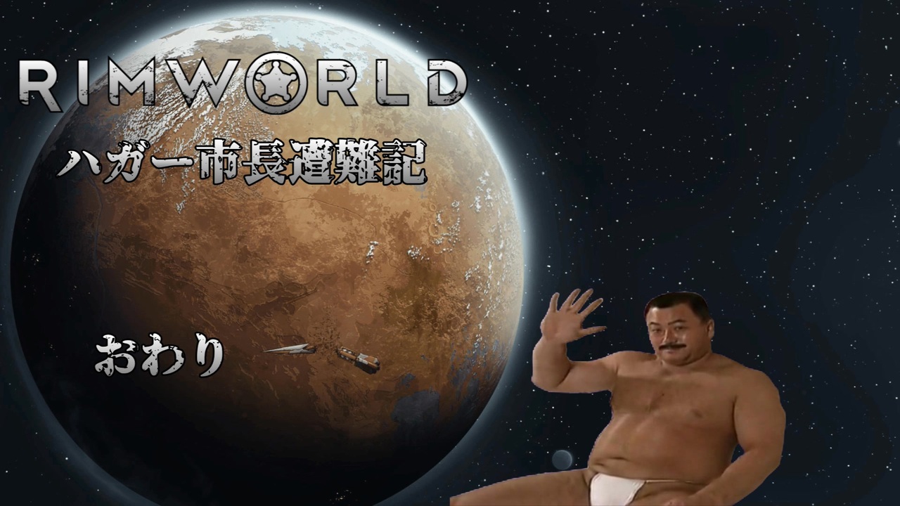 <br>やっと、遭難が終わったんやな・・・<br><br>本シリーズを見て下さった視聴者兄貴の皆様、コメント、いいね、広告、マイリスしてくれた全ての皆様、ありがとナス!<br>動画のコンセプトとしては何度見ても見やすいを目指して作ってましたが、どうでしたか?(小声)<br><br><br>前:<a href="https://www.nicovideo.jp/watch/sm45870851" class="watch">sm45870851</a><br><br>何度もリピートして見てくれ→<a href="https://www.nicovideo.jp/watch/sm45618980" class="watch">sm45618980</a><br><br><br><br><br>以下考えてたけど投稿者の力量不足で出していない設定(独自解釈)と詳細説明<br><br>・part1の明晰夢でのイデア<br>→AIであるイデアの支配する宙域に入ったからちょっかいかけただけ<br><br>・ダディーと野獣の墜落背景<br>→どちらも市長とは別の宇宙船で墜落<br><br>・市長の旅行目的<br>→戦いに疲れて農家になるため隠居<br><br>・イデアの正体<br>→市長が遭難した惑星そのもの<br><br>・イデアの目的<br>→遥か昔にとある星で滅ぼされたレクイーンの再構築及び復活。メカノイドを使役して外部から旅行者を墜落させ、星に定住させて繫栄を促し、食い時と判断したら一気に襲撃を起こし、死骸と魂のエネルギーを星の養分とする。惑星内には生成途中のレクイーンが眠っている<br><br>・part16のミンチョ組のやりたいこと<br>→アミは農家、トモミは料理人、ルンゴは医者<br>ただトモミはなぜか市長の農場にいる。<br><br>・カルメンのやりたいこと<br>→旦那探し。なのでEDではリッサと行動している<br><br>・ED最後の墓の周りに咲いてる花<br>→ミヤコワスレです。<br><br>他もなんかあったと思うけど忘れた(池沼)<br>