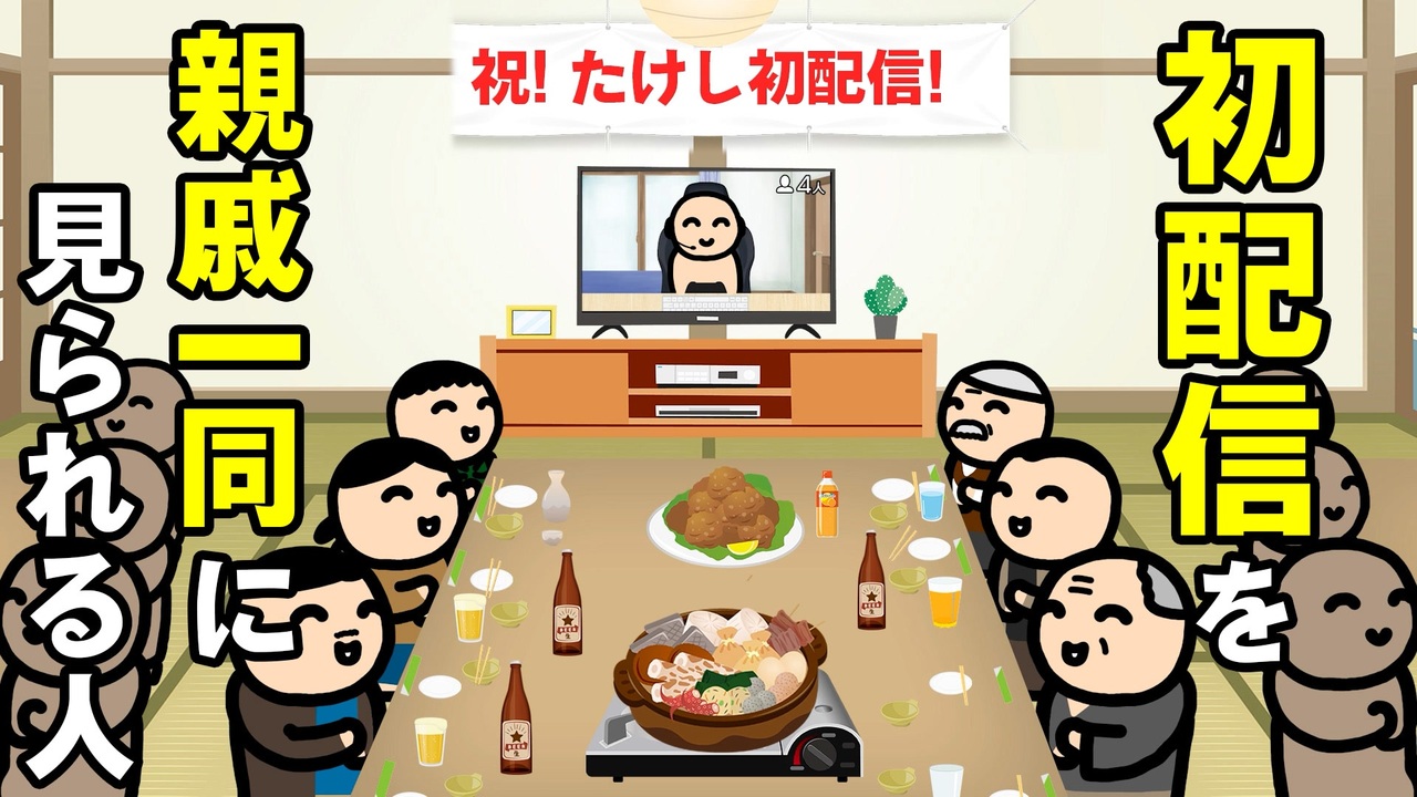 通常 エンターテイメント初配信を親戚一同に見守られる人