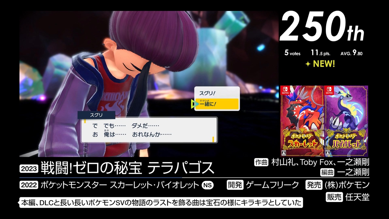 271位~247位の25曲を収録。<br><br>2024年6月11日~2024年8月1日で行われた「第17回みんなで決めるゲーム音楽ベスト100」の投票結果動画です。集計人≠動画制作者<br>これがやりたかっただけです<br><br><a href="https://www.nicovideo.jp/watch/sm45869578" class="watch">sm45869578</a>←前 次→来週<br><a href="https://www.nicovideo.jp/mylist/78315745" target="_blank" rel="noopener">mylist/78315745</a> <a href="https://www.nicovideo.jp/series/523562" target="_blank" rel="noopener">series/523562</a><br><br>271位 <a href="#" class="seekTime" data-seekTime="0:31" onclick="seekNicoPlayer('#0:31'); return false;">#0:31</a> / 270位 <a href="#" class="seekTime" data-seekTime="3:09" onclick="seekNicoPlayer('#3:09'); return false;">#3:09</a> / 269位 <a href="#" class="seekTime" data-seekTime="4:46" onclick="seekNicoPlayer('#4:46'); return false;">#4:46</a> / 268位 <a href="#" class="seekTime" data-seekTime="7:14" onclick="seekNicoPlayer('#7:14'); return false;">#7:14</a> / 267位 <a href="#" class="seekTime" data-seekTime="9:50" onclick="seekNicoPlayer('#9:50'); return false;">#9:50</a> / 266位 <a href="#" class="seekTime" data-seekTime="11:42" onclick="seekNicoPlayer('#11:42'); return false;">#11:42</a> / 265位 <a href="#" class="seekTime" data-seekTime="14:47" onclick="seekNicoPlayer('#14:47'); return false;">#14:47</a> / 264位 <a href="#" class="seekTime" data-seekTime="17:32" onclick="seekNicoPlayer('#17:32'); return false;">#17:32</a> / 263位 <a href="#" class="seekTime" data-seekTime="20:53" onclick="seekNicoPlayer('#20:53'); return false;">#20:53</a> / 262位 <a href="#" class="seekTime" data-seekTime="22:13" onclick="seekNicoPlayer('#22:13'); return false;">#22:13</a> / 261位 <a href="#" class="seekTime" data-seekTime="24:49" onclick="seekNicoPlayer('#24:49'); return false;">#24:49</a> / 258位 <a href="#" class="seekTime" data-seekTime="27:51" onclick="seekNicoPlayer('#27:51'); return false;">#27:51</a>, <a href="#" class="seekTime" data-seekTime="32:37" onclick="seekNicoPlayer('#32:37'); return false;">#32:37</a>, <a href="#" class="seekTime" data-seekTime="34:58" onclick="seekNicoPlayer('#34:58'); return false;">#34:58</a> / 257位 <a href="#" class="seekTime" data-seekTime="39:39" onclick="seekNicoPlayer('#39:39'); return false;">#39:39</a> / 256位 <a href="#" class="seekTime" data-seekTime="44:26" onclick="seekNicoPlayer('#44:26'); return false;">#44:26</a> / 254位 <a href="#" class="seekTime" data-seekTime="46:19" onclick="seekNicoPlayer('#46:19'); return false;">#46:19</a>, <a href="#" class="seekTime" data-seekTime="54:42" onclick="seekNicoPlayer('#54:42'); return false;">#54:42</a> / 253位 <a href="#" class="seekTime" data-seekTime="60:56" onclick="seekNicoPlayer('#60:56'); return false;">#60:56</a> / 251位 <a href="#" class="seekTime" data-seekTime="63:41" onclick="seekNicoPlayer('#63:41'); return false;">#63:41</a>, <a href="#" class="seekTime" data-seekTime="66:52" onclick="seekNicoPlayer('#66:52'); return false;">#66:52</a> / 250位 <a href="#" class="seekTime" data-seekTime="69:21" onclick="seekNicoPlayer('#69:21'); return false;">#69:21</a> / 249位 <a href="#" class="seekTime" data-seekTime="72:32" onclick="seekNicoPlayer('#72:32'); return false;">#72:32</a> / 247位 <a href="#" class="seekTime" data-seekTime="75:26" onclick="seekNicoPlayer('#75:26'); return false;">#75:26</a>, <a href="#" class="seekTime" data-seekTime="78:09" onclick="seekNicoPlayer('#78:09'); return false;">#78:09</a><br><br>----------<br><br>スクリーンショット募集中!詳細はこちら↓<br><a href="https://gamemusic17.vercel.app/" target="_blank" rel="noopener nofollow">https://gamemusic17.vercel.app/</a><br><br>結果詳細↓<br><a href="https://w.atwiki.jp/gamemusicbest100/pages/10538.html" target="_blank" rel="noopener nofollow">https://w.atwiki.jp/gamemusicbest100/pages/10538.html</a><br /><br>----------<br><br>第2回みんなで決める和風曲ランキング 2/28まで投票受付中!<br><a href="https://jbbs.shitaraba.net/bbs/read.cgi/music/25545/1764514793/" target="_blank" rel="noopener nofollow">https://jbbs.shitaraba.net/bbs/read.cgi/music/25545/1764514793/</a><br><br>みんなで決める2025年の新曲ゲーム音楽ランキング 3/31まで投票受付中!<br><a href="https://jbbs.shitaraba.net/bbs/read.cgi/music/25545/1769870472/" target="_blank" rel="noopener nofollow">https://jbbs.shitaraba.net/bbs/read.cgi/music/25545/1769870472/</a>