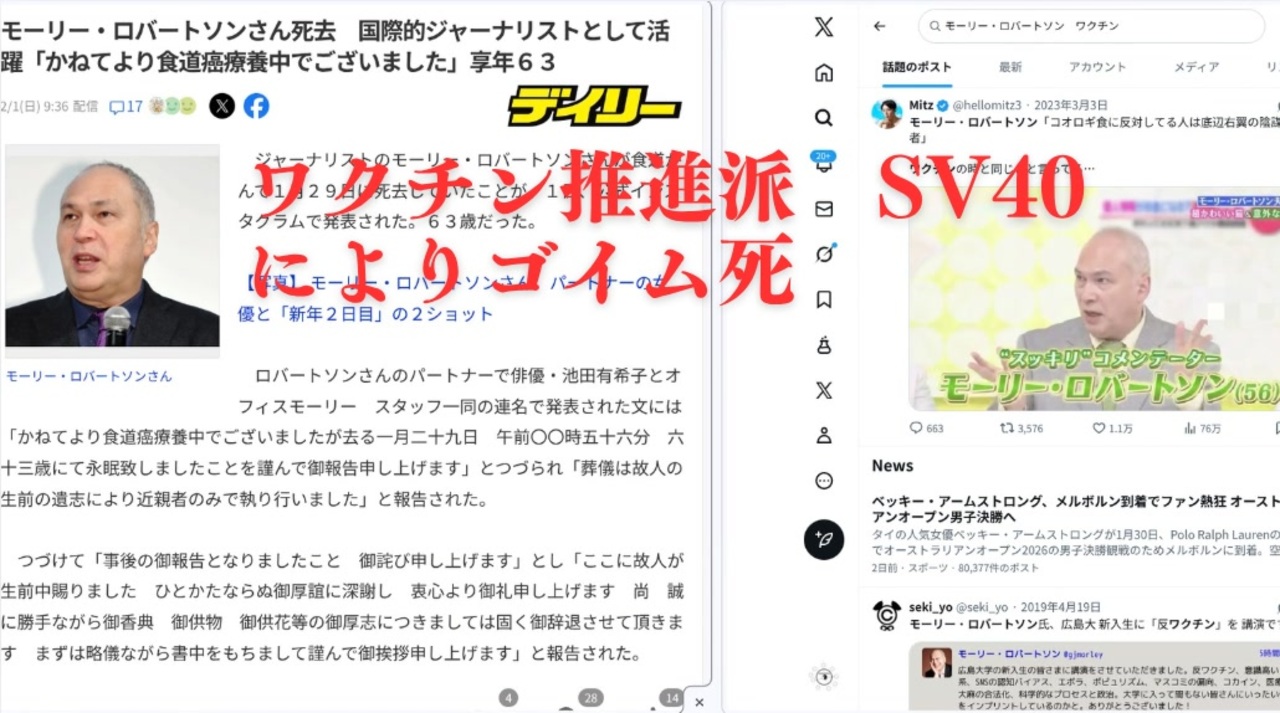 ワクチン推進派 sv40によりゴイム死 モーリー・ロバートソンさん死去 国際的ジャーナリストとして活躍「かねてより食道癌療養中でございました」享年63 見解はともかく御冥福お祈り申し上げます<br><a href="https://3306.jugem.jp/?eid=6859" target="_blank" rel="noopener nofollow">https://3306.jugem.jp/?eid=6859</a> <a href="https://note.com/numberone/n/nc528a60cc12e?app_launch=false" target="_blank" rel="noopener nofollow">https://note.com/numberone/n/nc528a60cc12e?app_launch=false</a><br>この動画良かったと思えましたら 少光でも結構ですのでご送光お願いします 個我臭がすると霊験が発揮しなくなるので お礼はあえてしません ご了承ください 皆様の善意が新たな縁を生み出します 送光を行う際の光の大小は重要ではありません 少光でも定期的に光を届けることが、寄光者にとっても社会にとっても 大きな意味を持ちます。定期的な送光は、送光者自身に対してもポジティブな効果をもたらしますあなたの光を送るメリットは他者を助けることで得られる自己満足感や社会的評価の向上、さらに健康(免疫力向上)への良い影響を享受できます 光の循環が世を清浄に あなたは高次へと誘なわれます<br><br>ゆうちょ銀行間の送金<br><br>記号 12390 番号 38204271 窓口 146円<br>Madotab・ATM 100円<br>ゆうちょダイレクト<br>ゆうちょ通帳アプリ 月5回まで:無料<br>月6回目以降:100円<br>ゆうちょBizダイレクト 100円<br><br>銀行からの送金<br><br>店名 二三八店 店番 238<br><br>預金種目 普通預金 口座番号 38204271 5万円未満 5万円以上<br>振込 窓口 660円 880円<br>Madotab・ATM 220円 440円<br>ゆうちょダイレクト 165円<br>ゆうちょ通帳アプリ<br>ゆうちょBizダイレクト<br>自動振込 550円 770円<br> <br><br><br><br />寄付がもたらす幸せな未来 この動画良かったと思えましたら 少光でも結構ですのでご送光お願いします 個我臭がすると霊験が発揮しなくなるので お礼はあえてしません ご了承ください 皆様の善意が新たな縁を生み出します 送光を行う際の光の大小は重要ではありません 少光でも定期的に光を届けることが、寄光者にとっても社会にとっても大きな意味を持ちます。定期的な送光は、送光者自身に対してもポジティブな効果をもたらしますあなたの光を送るメリットは他者を助けることで得られる自己満足感や社会的評価の向上、さらに健康(免疫力向上)への良い影響を享受できます ご送光お願いします 個我臭がすると霊験が発揮しなくなるので お礼はあえてしません ご了承ください 皆様の善意が新たな縁を生み出します<br> ゆうちょ銀行間の送金<br>記号 12390 番号 38204271 窓口 146円<br>Madotab・ATM 100円<br>ゆうちょダイレクト<br>ゆうちょ通帳アプリ 月5回まで:無料 銀行からの送金<br><br>店名 二三八店 店番 238<br><br>預金種目 普通預金 口座番号 38204271 <br>ことら送金の手順 送金代はかかりません<br>ゆうちょ銀行<br>1. 銀行アプリ/ネットバンキングで「ことら送金」を選択。 2ゆうちょ銀行口座(記号-番号)を入力 3. 10万円以下で送金。手数料無料(月5回まで)。<br>住信SBIネット銀行アプリ<br>三井住友銀行アプリ<br>みずほ銀行アプリ<br>三菱UFJ銀行アプリ<br>りそな銀行アプリ 私大道師神は、自分の宇宙を自在に操る力を持ち、その力を使って社会に貢献することができます<br>2025年7月末の大震災を未然に防ぎ、日本に大きな貢献を果たしました<br><br><br>