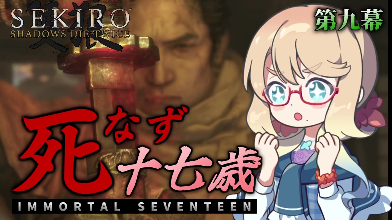 不死斬り、確かに… <br>もらい受けた <br><br>本動画はSEKIROの重大なネタバレを含みますので、ご視聴の際はご注意ください<br><br>フロムソフトウェア開発のアクションアドベンチャー「SEKIRO:SHADOWS DIE TWICE」の人返りエンド到達を目的とする実況プレイです<br><br><a href="https://www.nicovideo.jp/watch/sm45239901" class="watch">sm45239901</a> < 第八幕 | この動画 第九幕 | 第十幕 > まだ <br><br>序幕・修羅(part1) : <a href="https://www.nicovideo.jp/watch/sm44135850" class="watch">sm44135850</a><br>死なず十七歳まとめ : <a href="https://www.nicovideo.jp/mylist/77190853" target="_blank" rel="noopener">mylist/77190853</a><br><br>プレイ条件は以下の通りです<br>・8周目以降の最高難易度<br>・さらなる苦難(ガードでも3割程度のダメージ貫通) + 厄憑(敵強化)<br>・オプションからHUD(画面上の体力や装備忍具などの情報)非表示設定<br>※攻め力(攻撃力)、身体力(体力&体幹)は最大まで強化した状態で行っております<br><br>投稿者の他シリーズ<br>完結済<br>・東北イタコのセレステ山登頂ツアー(Celeste) : <a href="https://www.nicovideo.jp/series/130294" target="_blank" rel="noopener">series/130294</a><br>・琴葉葵の惑星ZDR Hard 0%弾丸ツアー(メトロイドドレッド) : <a href="https://www.nicovideo.jp/series/283251" target="_blank" rel="noopener">series/283251</a><br>・ARIA ON THE TROPICAL(ドンキーコングトロピカルフリーズ) : <a href="https://www.nicovideo.jp/series/357550" target="_blank" rel="noopener">series/357550</a>