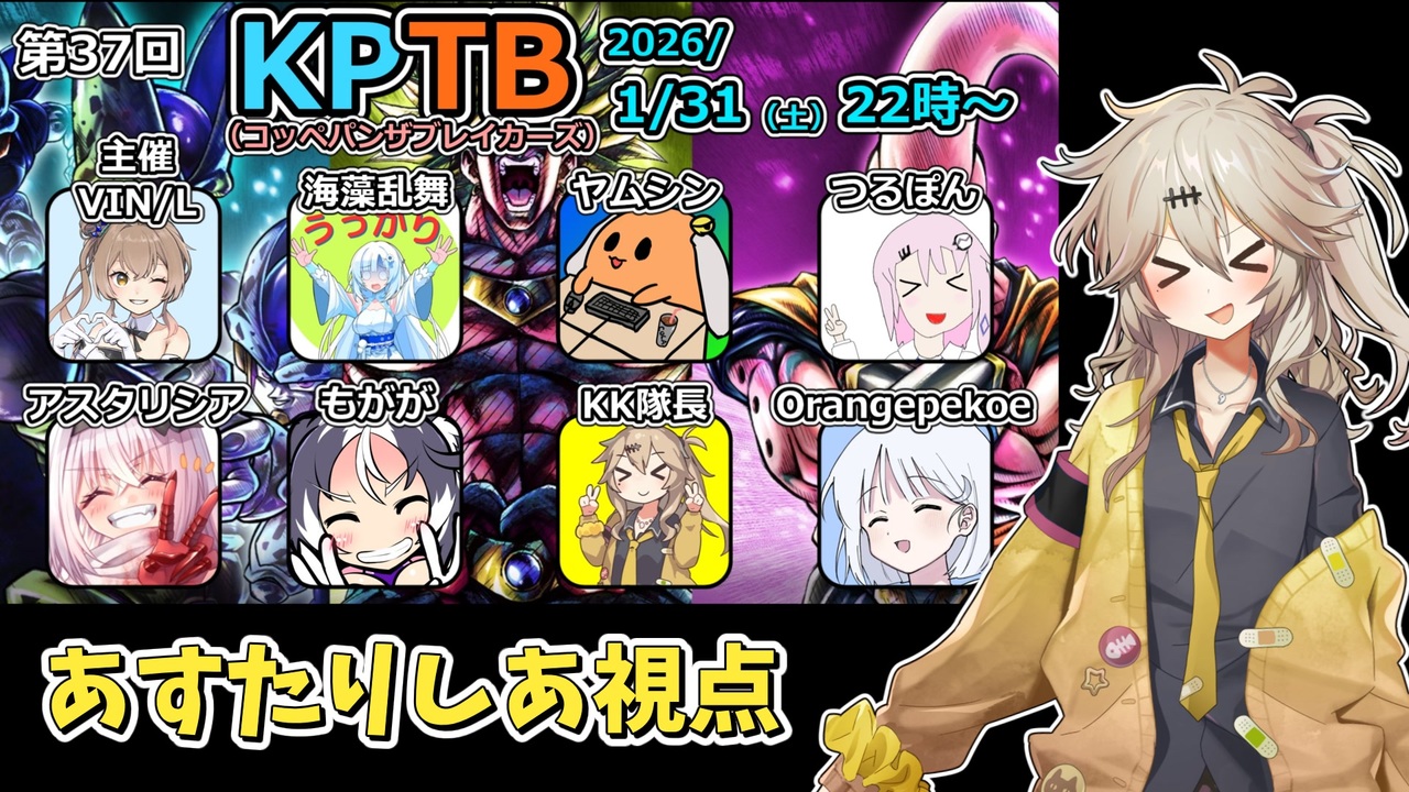 久々だねー🐈<br><br><br>◆KPTB参加者◇<br>VIN/Lさん <a href="https://www.nicovideo.jp/user/123010347" target="_blank" rel="noopener">user/123010347</a><br>kk隊長さん <a href="https://www.nicovideo.jp/user/24242403" target="_blank" rel="noopener">user/24242403</a><br>もががさん <a href="https://www.nicovideo.jp/user/46251515" target="_blank" rel="noopener">user/46251515</a><br>ヤムシンさん <a href="https://www.nicovideo.jp/user/21819424" target="_blank" rel="noopener">user/21819424</a><br>海藻乱舞さん <a href="https://www.nicovideo.jp/user/128788617" target="_blank" rel="noopener">user/128788617</a><br>Orange Pekoeさん <a href="https://www.nicovideo.jp/user/154485" target="_blank" rel="noopener">user/154485</a> <br>つるぽんさん <a href="https://www.nicovideo.jp/user/121983144" target="_blank" rel="noopener">user/121983144</a><br> <br>いつも立ち絵、素材元様には感謝してます<br>宣伝、コメント、いいねありがとう!<br><br>◇お借りしたもの<br>YMM4<br>VOICEVOX<br><a href="https://voicevox.hiroshiba.jp/" target="_blank" rel="noopener nofollow">https://voicevox.hiroshiba.jp/</a><br>VOICEVOX 春日部つむぎ<br><br><br>◆立ち絵<br>春日部つむぎ公式様 <a href="https://seiga.nicovideo.jp/seiga/im10842587" target="_blank" rel="noopener">im10842587</a><br><br><br>◇使用させていただいた素材元<br>ニコニコモンズ<br>※使用させていただいた素材は親登録しております。<br>