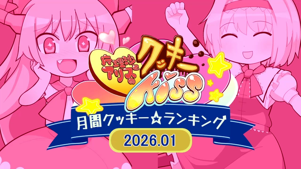 2026年1月のクッキー☆ランキングです。クッキー☆であればジャンル不問です。<br>ピックアップは月末動画:好みの動画:30位付近の動画 を 2:3:5の比率で選んでいます。<br><br>01:<a href="https://www.nicovideo.jp/watch/sm45789095" class="watch">sm45789095</a> 02:<a href="https://www.nicovideo.jp/watch/sm45690939" class="watch">sm45690939</a> 03:<a href="https://www.nicovideo.jp/watch/sm45796693" class="watch">sm45796693</a> 04:<a href="https://www.nicovideo.jp/watch/sm45867349" class="watch">sm45867349</a> 05:<a href="https://www.nicovideo.jp/watch/sm45849097" class="watch">sm45849097</a><br>06:<a href="https://www.nicovideo.jp/watch/sm45878389" class="watch">sm45878389</a> 07:<a href="https://www.nicovideo.jp/watch/sm45826511" class="watch">sm45826511</a> 08:<a href="https://www.nicovideo.jp/watch/sm45790576" class="watch">sm45790576</a> 09:<a href="https://www.nicovideo.jp/watch/sm45809331" class="watch">sm45809331</a> 10:<a href="https://www.nicovideo.jp/watch/sm45867940" class="watch">sm45867940</a><br>11:<a href="https://www.nicovideo.jp/watch/sm45860747" class="watch">sm45860747</a> 12:<a href="https://www.nicovideo.jp/watch/sm45819524" class="watch">sm45819524</a> 13:<a href="https://www.nicovideo.jp/watch/sm45842175" class="watch">sm45842175</a> 14:<a href="https://www.nicovideo.jp/watch/sm45876875" class="watch">sm45876875</a> 15:<a href="https://www.nicovideo.jp/watch/sm45796924" class="watch">sm45796924</a><br>16:<a href="https://www.nicovideo.jp/watch/sm45877155" class="watch">sm45877155</a> 17:<a href="https://www.nicovideo.jp/watch/sm45790613" class="watch">sm45790613</a> 18:<a href="https://www.nicovideo.jp/watch/sm45831528" class="watch">sm45831528</a> 19:<a href="https://www.nicovideo.jp/watch/sm45883705" class="watch">sm45883705</a> 20:<a href="https://www.nicovideo.jp/watch/sm45874347" class="watch">sm45874347</a><br>21:<a href="https://www.nicovideo.jp/watch/sm45828811" class="watch">sm45828811</a> 22:<a href="https://www.nicovideo.jp/watch/sm45880524" class="watch">sm45880524</a> 23:<a href="https://www.nicovideo.jp/watch/sm45892883" class="watch">sm45892883</a> 24:<a href="https://www.nicovideo.jp/watch/sm45890158" class="watch">sm45890158</a> 25:<a href="https://www.nicovideo.jp/watch/sm45811356" class="watch">sm45811356</a><br>26:<a href="https://www.nicovideo.jp/watch/sm45825803" class="watch">sm45825803</a> 27:<a href="https://www.nicovideo.jp/watch/sm45877192" class="watch">sm45877192</a> 28:<a href="https://www.nicovideo.jp/watch/sm45882963" class="watch">sm45882963</a> 29:<a href="https://www.nicovideo.jp/watch/sm45854798" class="watch">sm45854798</a> 30:<a href="https://www.nicovideo.jp/watch/sm45867646" class="watch">sm45867646</a><br>P1:<a href="https://www.nicovideo.jp/watch/sm45895875" class="watch">sm45895875</a> P2:<a href="https://www.nicovideo.jp/watch/sm45892417" class="watch">sm45892417</a> P3:<a href="https://www.nicovideo.jp/watch/sm45797765" class="watch">sm45797765</a> P4:<a href="https://www.nicovideo.jp/watch/sm45792781" class="watch">sm45792781</a> P5:<a href="https://www.nicovideo.jp/watch/sm45841480" class="watch">sm45841480</a><br>P6:<a href="https://www.nicovideo.jp/watch/sm45879740" class="watch">sm45879740</a> P7:<a href="https://www.nicovideo.jp/watch/sm45800830" class="watch">sm45800830</a> P8:<a href="https://www.nicovideo.jp/watch/sm45866348" class="watch">sm45866348</a> P9:<a href="https://www.nicovideo.jp/watch/sm45824204" class="watch">sm45824204</a> P10:<a href="https://www.nicovideo.jp/watch/sm45836251" class="watch">sm45836251</a><br>OP:<a href="https://www.nicovideo.jp/watch/sm45788585" class="watch">sm45788585</a><br><br><br>※本動画は、現状のクッキー☆を少しでも盛り上げることを目的に制作しています。<br>気になった動画は、ぜひ上記リンクよりチェックしてください。<br>※2023年までのランキングとは集計対象、評価方法ともに異なります。ご了承ください。