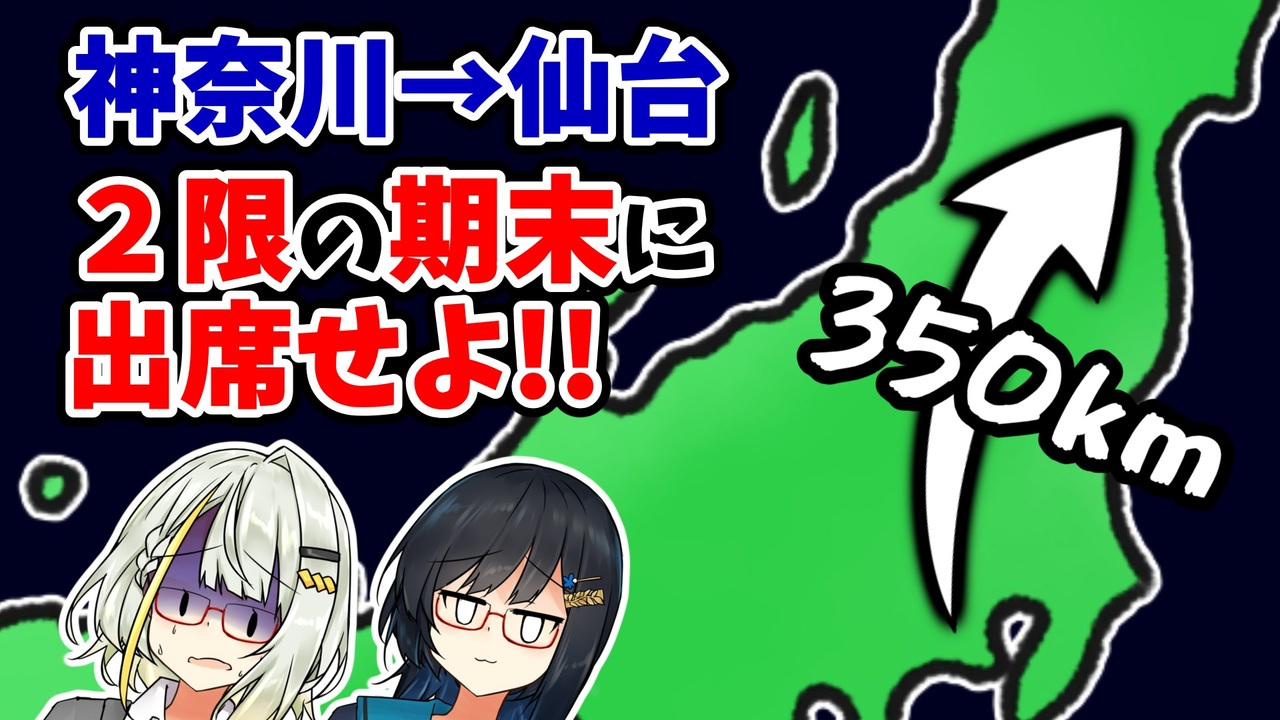 <span style="color: #0000ff; font-size: 18px;"><strong>双葉湊音ちゃん、誕生日おめでとうございます!!</strong></span><br><br>誕生日を祝う動画がこれでいいのか...<br>ご視聴ありがとうございます。タンジェントです。<br>投稿が約一年ぶり。お待たせいたしました。お待たせしすぎたかもしれません。<br>なんてことない大学生の日常(!?)動画、成人式翌日のエクストリーム通学的なやつです。<br>いつも通り、ヤマもオチもない動画ですが、楽しんでいただけたら。<br><br><br><span style="color: #0000ff; font-size: 18px;"><strong>こんな通学は青春じゃない!!</strong></span><br><br><br><br>この動画を見ている役所の方がいれば、成人式は日曜日にしてあげてください...<br><br><br><br>使用音声<br>・A.I.VOICE2 紡乃世詞音<br>・VoiSona Talk 双葉湊音<br><br>使用素材<br>戌田ハチ様:<br>・戌田式紡乃世詞音&双葉湊音立ち絵素材 <a href="https://seiga.nicovideo.jp/seiga/im11732536" target="_blank" rel="noopener">im11732536</a><br>フリー素材あそび様:<br>・マスキングテープとピンの素材 <a href="https://commons.nicovideo.jp/works/nc201559" target="_blank" rel="noopener">nc201559</a><br>liaru様:<br>・4K対応 21:9 シネマスコープ用レターボックス黒帯【Adobe Premiere Pro向けモーショングラフィックステンプレート付き】 <a href="https://commons.nicovideo.jp/works/nc308204" target="_blank" rel="noopener">nc308204</a><br>Mナオキchannel様:<br>・少しゆるい日本地図 <a href="https://commons.nicovideo.jp/works/nc320978" target="_blank" rel="noopener">nc320978</a><br>森の子リスのミーコの大冒険様:<br>・シュッとした矢印 <a href="https://commons.nicovideo.jp/works/nc371112" target="_blank" rel="noopener">nc371112</a><br>効果音ラボ様:<br>・【効果音ラボ】ビシッとツッコミ(漫才演出に) <a href="https://commons.nicovideo.jp/works/nc165744" target="_blank" rel="noopener">nc165744</a><br>・【効果音ラボ】ビシッとツッコミ3 <a href="https://commons.nicovideo.jp/works/nc84977" target="_blank" rel="noopener">nc84977</a><br>かずち1st様:<br>・パステルハウス <a href="https://commons.nicovideo.jp/works/nc86297" target="_blank" rel="noopener">nc86297</a><br>しゃろう様:<br>・SUMMER TRIANGLE <a href="https://commons.nicovideo.jp/works/nc231863" target="_blank" rel="noopener">nc231863</a><br><br>使用編集ソフト<br>・AviUtl ExEdit2<br>(プラグインは動画内クレジット参照)<br><br>動画制作<br>タンジェント<br><br>動画制作者Twitter(現:X)<br><a href="https://x.com/TangentPhi" target="_blank" rel="noopener nofollow">https://x.com/TangentPhi</a><br>※連絡がありましたら、こちらのDMに送信ください。