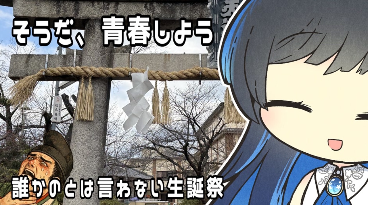 そうだ、青春しよう<br>誰かの誕生日なので、全然違う人の生誕の地を訪れてみました。<br>この近くの肉屋でお肉や安いと聞いたので…買いに行ったついでです。<br><br>菅公御誕生地<br><a href="https://maps.app.goo.gl/tAaKF25tFkaUvBta6" target="_blank" rel="noopener nofollow">https://maps.app.goo.gl/tAaKF25tFkaUvBta6</a><br><br>クレジット<br>青主演:双葉湊音(CeVIO AI)<br>立ち絵:立ち双葉湊音(Akihiyo様)- <a href="https://seiga.nicovideo.jp/seiga/im11083984" target="_blank" rel="noopener">im11083984</a><br> :VOICEROIDのちっこいイラスト素材(虹色にゃんたMIX様)-<a href="https://seiga.nicovideo.jp/seiga/im10081700" target="_blank" rel="noopener">im10081700</a><br> :鳴花ヒメ・ミコト 立ち絵素材(吉野様)-<a href="https://seiga.nicovideo.jp/seiga/im11584194" target="_blank" rel="noopener">im11584194</a><br>音関係:遠く遠のく(騒音のない世界様)<br>その他:google/ChatGPT