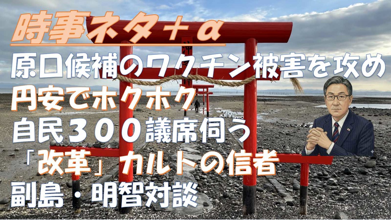 ◆失敗小僧<br>高市早苗自民党圧勝安定過半数越えの報道を日英首脳会談を絡めて考える 2026年2月衆院選挙<br><br>◆哲学系youtubrじゅんちゃん<br>高市早苗は討論会から結局逃げたのか 逃げてないのか?<br><br>◆すずぽん<br>【速報】ゆうこく連合が日曜討論でワクチン被害を投下する<br><br>◆鳥集徹<br>裏付けの取れない極端な説や科学的に抜け穴のある研究、攻撃的な強い表現を使いすぎると、常識的な感覚を持つ人々は離れます。<br><br>◆和田秀樹<br>【横浜市長パワハラ】医学部教授という肩書の怖さ<br>【幸齢党コーナー】高齢者政策を要チェック!<br><br><br>円安で外為特会ホクホクと首相 デメリットに触れず<br><br>◆青山まさゆき<br>だから、金持ちが敢えて高市首相を推すならわかるが、外貨運用などしてそうもない若い人や庶民層の方々が高市推しするのはなぜ?隠された被虐嗜好?<br><br><br>自維300議席超うかがう 中道半減も 参政・みらい勢い 朝日調査朝日新聞<br><br>◆古村治彦<br>勢力圏(sphere of influence)という考え方がドンロー主義の基盤だがそれはやりたい放題を許すものではない<br><br><br>副島隆彦と明智憲三郎の対談(第1回・全6回) 2026年2月2日<br><br>#副島隆彦<br>#明智憲三郎<br>#本能寺の変<br>#古村治彦<br>#鳥集徹<br>#青山まさゆき<br>#すずぽん<br>#失敗小僧<br>#すずぽん
