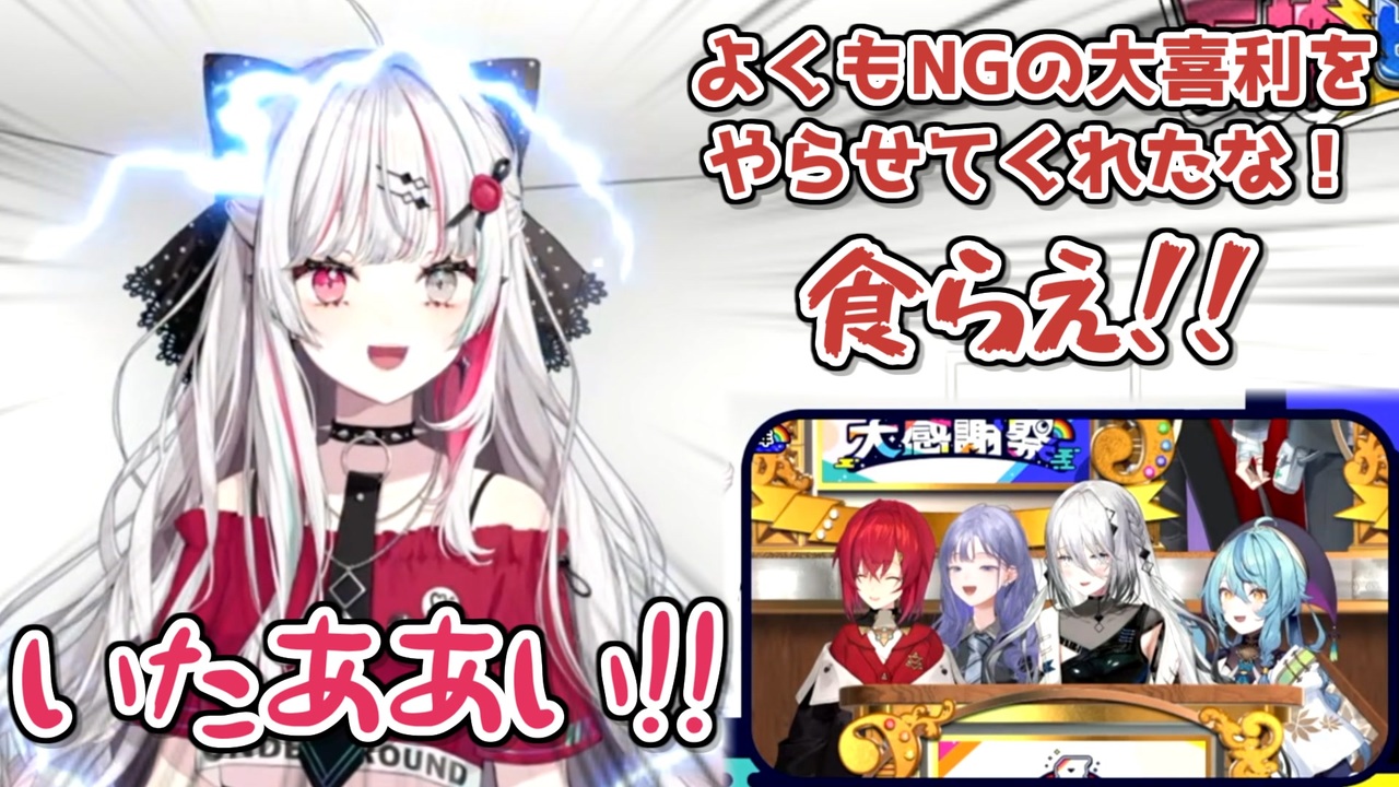こうしてジワジワと電撃耐性がついていき<br>いつか電撃能力が開花しそう<br><br>本家参考動画<br>・にじさんじ公式<br>8th Anniversary にじさんじ大感謝祭 第1部【#にじさんじ8周年】<br><a href="https://youtu.be/GvmbsxXHH-s" target="_blank" rel="noopener nofollow">https://youtu.be/GvmbsxXHH-s</a><br><br>参考元チャンネル&X(Twitter)<br>・石神のぞみ<br><a href="https://www.youtube.com/@IshigamiNozomi" target="_blank" rel="noopener nofollow">https://www.youtube.com/@IshigamiNozomi</a><br><a href="https://twitter.com/I_Nozomi_" target="_blank" rel="noopener nofollow">https://twitter.com/I_Nozomi_</a><br>・アンジュ・カトリーナ<br><a href="https://www.youtube.com/@AngeKatrina" target="_blank" rel="noopener nofollow">https://www.youtube.com/@AngeKatrina</a><br><a href="https://twitter.com/ange_katrina_" target="_blank" rel="noopener nofollow">https://twitter.com/ange_katrina_</a><br>・先斗寧<br><a href="https://www.youtube.com/@PontoNei" target="_blank" rel="noopener nofollow">https://www.youtube.com/@PontoNei</a><br><a href="https://twitter.com/ponto_nei" target="_blank" rel="noopener nofollow">https://twitter.com/ponto_nei</a><br>・ソフィア・ヴァレンタイン<br><a href="https://www.youtube.com/@Sophia_Valentine" target="_blank" rel="noopener nofollow">https://www.youtube.com/@Sophia_Valentine</a><br><a href="https://twitter.com/SophiaV214" target="_blank" rel="noopener nofollow">https://twitter.com/SophiaV214</a><br>・珠乃井ナナ<br><a href="https://www.youtube.com/@TamanoiNana" target="_blank" rel="noopener nofollow">https://www.youtube.com/@TamanoiNana</a><br><a href="https://x.com/7_tamanoi" target="_blank" rel="noopener nofollow">https://x.com/7_tamanoi</a><br>・佐伯イッテツ<br><a href="https://www.youtube.com/@SaikiIttetsu" target="_blank" rel="noopener nofollow">https://www.youtube.com/@SaikiIttetsu</a><br><a href="https://twitter.com/Saiki_Supadari" target="_blank" rel="noopener nofollow">https://twitter.com/Saiki_Supadari</a><br>・にじさんじ<br><a href="https://www.youtube.com/@nijisanji" target="_blank" rel="noopener nofollow">https://www.youtube.com/@nijisanji</a><br><a href="https://twitter.com/nijisanji_app" target="_blank" rel="noopener nofollow">https://twitter.com/nijisanji_app</a><br><br>ニコニコのダイコンマンリスト<br>「バーチャルYouTuberシリーズ1~5」↓<br>1 <a href="https://www.nicovideo.jp/mylist/62551838" target="_blank" rel="noopener">mylist/62551838</a><br>2 <a href="https://www.nicovideo.jp/mylist/67858437" target="_blank" rel="noopener">mylist/67858437</a><br>3 <a href="https://www.nicovideo.jp/mylist/71340675" target="_blank" rel="noopener">mylist/71340675</a><br>4 <a href="https://www.nicovideo.jp/mylist/73995264" target="_blank" rel="noopener">mylist/73995264</a><br>5 <a href="https://www.nicovideo.jp/mylist/76618161" target="_blank" rel="noopener">mylist/76618161</a><br><br>ダイコンマンのTwitter<br><a href="https://twitter.com/Daikon_Man_V" target="_blank" rel="noopener nofollow">https://twitter.com/Daikon_Man_V</a>