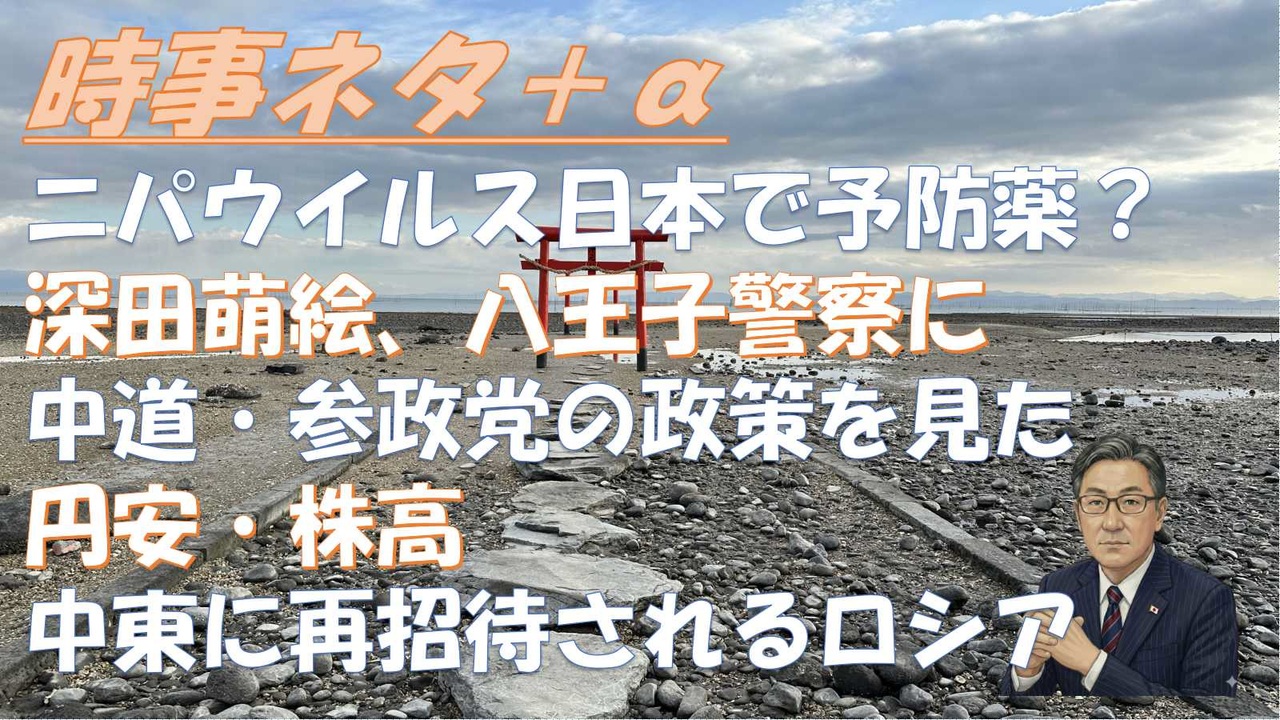 ◆ひろうぃんむーびー<br>【DAY ZERO246】再上映<br><br>◆深田萌絵<br>【衝撃の事実】1月15日既に○○が決定してた。八王子警察は萩生田陣営の選挙法違反被害を認めてくれた。<br>【衝撃の事実】偏向報道と萩生田陣営のトリック<br><br>◆神谷宗幣<br>神谷宗幣が衆議院選挙をリアルタイム解説!現状の選挙情勢と参政党と高市自民党との距離感とは?|神谷宗幣<br><br>◆カナダ人ニュース<br>2.2 英国首相の訪中が「朝貢」と批判される理由<br><br>◆すずぽん<br>自民党が選挙用に広告をぶん回した結果、再生数がヤバイ<br><br>◆横森一輝<br>米空母3隻集結で緊張MAX…ホルムズ海峡のヤバい睨み合いの行方<br><br>◆和田秀樹<br>【高市氏の田舎無視】2月選挙は誰のため?<br><br>中東に再招待されるロシア<br>2026年2月3日 田中 宇<br><br>富士宮市大中里に建設中の県内最大級メガソーラー建設の事業<br><br>参政神谷氏、SNS発信広がらず 「違和感がある」<br><br>◆古村治彦<br>国防費倍々ゲーム×改憲×増税=戦争。高市首相が国論を二分する政策<br>民主平和論はネオコンによって利用され世界に害悪をもたらした<br><br>中道改革連合<br>参政党 の政策<br><br>◆新党みらい<br>消費税を減税せずに、高齢者の医療費負担を3割にねぇ…。<br><br>【萩生田と深田、どちらが選挙妨害か】<br><br>日経平均株価、取引時間中の最高値更新 一時上げ幅2000円超<br><br>円大幅安、一時155円台半ば=高市首相「円安容認」観測、株は乱高下―東京市場<br><br>米、歴史的寒波の死者42人に 50万戸以上で停電続く<br><br><br>#選挙妨害<br>#ニパウイルス<br>#ひろうぃんむーびー<br>#古村治彦<br>#田中宇<br>#新党みらい<br>#神谷宗幣<br>#和田秀樹<br>#すずぽん
