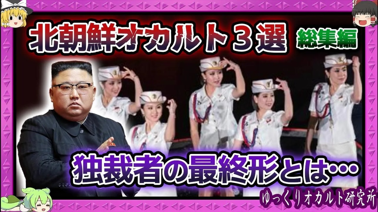 金日成・金正日そして現在の金正恩へと独裁政治が続く北朝鮮。国民の暮らしが限界を迎える中で、支配者たちは女性を囲い、贅沢の限りを尽くしています。不満を抑え込むための不気味なプロパガンダも続く、異形の国家を【 ゆっくり解説 金正恩 北朝鮮 総集編 】シリーズとして、ゆっくり茶番劇スタイルでお届けします。 00:00 イントロダクション 00:12 目次 00:20 ハーレムを超える酒池肉林 喜び組 08:26 金一族の超絶特殊能力 17:05 金正恩のミュージックビデオ 27:14 まとめと超どうでもいい話 ★関連動画はこちらから! <a href="https://youtube.com/@ゆっくりオカルト研究所" target="_blank" rel="noopener nofollow">https://youtube.com/@ゆっくりオカルト研究所</a> ★気まずすぎる動画はメンバーシップで…→ <a href="https://www.youtube.com/channel/UCirxRvghHohWx9iWLKYuceg/join" target="_blank" rel="noopener nofollow">https://www.youtube.com/channel/UCirxRvghHohWx9iWLKYuceg/join</a> ★規制されてしまった動画・オリジナル動画等あり!裏オカ研(サブスク):再生リスト「裏のアレ」→ <a href="https://mediable.jp/playlists/c98143a6-4a92-4337-9325-e15eadaab6e2" target="_blank" rel="noopener nofollow">https://mediable.jp/playlists/c98143a6-4a92-4337-9325-e15eadaab6e2</a> #北朝鮮#喜び組#金正恩#都市伝説#総集編