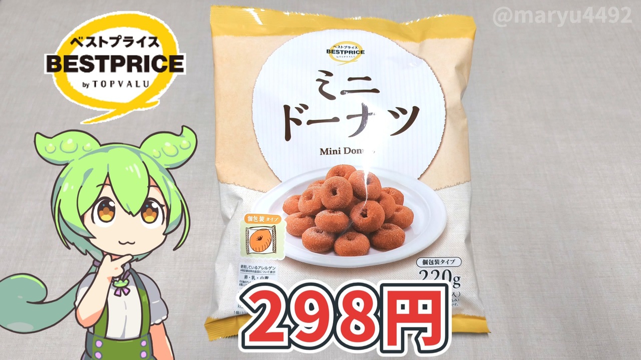 トップバリュのミニドーナツとヤングドーナツでお馴染みの<br>宮田製菓株式会社のドーナツを食べ比べてみました。<br><br><br><br>次回:トップバリュの黄色いヤツ「キャラメル味のポップコーン(198円)」<br><a href="https://www.nicovideo.jp/watch/sm45917514" target="_blank" rel="noopener nofollow">https://www.nicovideo.jp/watch/sm45917514</a><br>前回:東海地方のショッピングセンター、ヨシヅヤの「ロースカツとアジフライ弁当(398円)」<br><a href="https://www.nicovideo.jp/watch/sm45919342" target="_blank" rel="noopener nofollow">https://www.nicovideo.jp/watch/sm45919342</a><br><br>【参考】<br>ミニドーナツ※本体価格298円/220g(トップバリュ)<br><a href="https://www.topvalu.net/items/detail/4549414660968/" target="_blank" rel="noopener nofollow">https://www.topvalu.net/items/detail/4549414660968/</a><br>株式会社リボン<br><a href="https://www.ribon-jp.com/" target="_blank" rel="noopener nofollow">https://www.ribon-jp.com/</a><br>宮田製菓株式会社<br><a href="https://www.miyataseika.co.jp/" target="_blank" rel="noopener nofollow">https://www.miyataseika.co.jp/</a><br><br>【使用した素材】(※敬称略) <br>(合成音声)VOICEVOX/ずんだもん/四国めたん<br><a href="https://voicevox.hiroshiba.jp/" target="_blank" rel="noopener nofollow">https://voicevox.hiroshiba.jp/</a> <br>(立ち絵)坂本アヒル<br> <a href="https://seiga.nicovideo.jp/seiga/im10788496" target="_blank" rel="noopener nofollow">https://seiga.nicovideo.jp/seiga/im10788496</a><br>(楽曲)甘茶の音楽工房/「楽しい麦畑」「フルーツパフェ」「お城の舞踏会」<br><a href="https://amachamusic.chagasi.com/" target="_blank" rel="noopener nofollow">https://amachamusic.chagasi.com/</a>