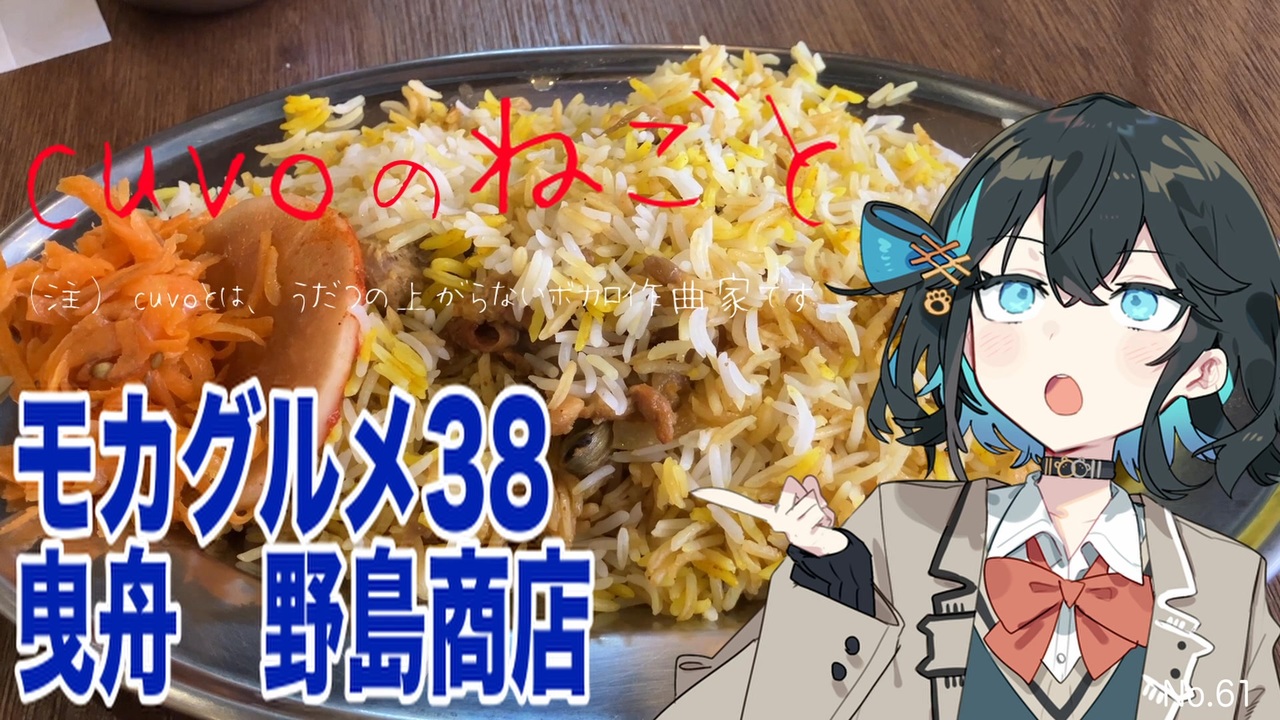 みなさん、こんにちは!<br>cuvoのねごと、第61回です!<br><br>シリーズ「モカグルメ」第38弾でーす<br><br>今回は、東武スカイツリーラインの曳舟駅にある<br>「野島商店」に行ってきましたよー<br><br>生まれて初めてビリヤニというものを食べました♪<br>パラパラ食感のお米と、芳醇なスパイスに満たされましたぁ!<br><br>「これが至福ってやつですかぁ!」<br><br>気になった方は、ぜひ行ってみてくださいね!<br><br><br>ーーーーーーー<br>▼Xで発信中!cuvoのねごと<br><a href="https://twitter.com/cuvo_jpn" target="_blank" rel="noopener nofollow">https://twitter.com/cuvo_jpn</a><br><br><br>▼エンディングテーマ<br>「飲みに行こう」<br>曲:cuvo / 詞:vie<br>歌:seven(neutrino)<br><br>↓ニコ動<br><a href="https://nico.ms/sm41946436" target="_blank" rel="noopener nofollow">https://nico.ms/sm41946436</a><br><br>↓YouTube<br><a href="https://youtu.be/aJWyRuT7cGk" target="_blank" rel="noopener nofollow">https://youtu.be/aJWyRuT7cGk</a><br><br>ーーーーーーーーーーーーーーーーー<br><br />ニコニコ動画(cuvo:ボカロ曲)<br><a href="https://www.nicovideo.jp/user/123099454/video" target="_blank" rel="noopener nofollow">https://www.nicovideo.jp/user/123099454/video</a><br><br>YouTube<br><a href="https://www.youtube.com/channel/UCeyFWGAsM1u0r7XpT0yeDPA/" target="_blank" rel="noopener nofollow">https://www.youtube.com/channel/UCeyFWGAsM1u0r7XpT0yeDPA/</a><br><br>X(旧Twitter)<br><a href="https://twitter.com/cuvo_jpn" target="_blank" rel="noopener nofollow">https://twitter.com/cuvo_jpn</a><br><br>Instagram<br><a href="https://www.instagram.com/cuvo_jpn/" target="_blank" rel="noopener nofollow">https://www.instagram.com/cuvo_jpn/</a>