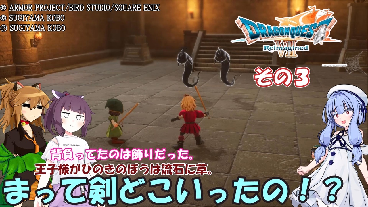 この動画は ドラゴンクエストVII Reimagined の実況プレイ動画となります。<br><br>難易度:いばらの道だぜ!<br><br>ネコ耳縛り?知らない子ですね・・・。<br><br><br>※動画投稿ガイドラインより<br>この動画で利用している株式会社スクウェア・エニックスを代表とする共同著作者が権利を所有する著作物及びスギヤマ工房有限会社が権利を所有する楽曲の転載・配布は禁止いたします。<br>© ARMOR PROJECT/BIRD STUDIO/SQUARE ENIX<br>© SUGIYAMA KOBO<br>℗ SUGIYAMA KOBO<br><br><a href="https://www.nicovideo.jp/watch/sm45924419" class="watch">sm45924419</a> ← 前 次 → <a href="https://www.nicovideo.jp/watch/sm45931525" class="watch">sm45931525</a><br>マイリスト → <a href="https://www.nicovideo.jp/mylist/77305494" target="_blank" rel="noopener">mylist/77305494</a><br>その1リスト → <a href="https://www.nicovideo.jp/mylist/58364125" target="_blank" rel="noopener">mylist/58364125</a><br><br>※使用Voice(及び配役)<br>VOICEVOX:春日部つむぎ(ネコ耳) 東北きりたん(きりたん)<br>立ち絵:ネコ耳(470/43様より頂きました)<br>Voiceroid:東北きりたん(立ち絵:このりEX様作 東北きりたん立ち絵素材5 <a href="https://seiga.nicovideo.jp/seiga/im10819054" target="_blank" rel="noopener">im10819054</a>)<br> 琴葉茜(立ち絵:ぴぴ様作 琴葉の茜ちゃん立ち絵 <a href="https://seiga.nicovideo.jp/seiga/im11484646" target="_blank" rel="noopener">im11484646</a>)<br> 琴葉葵(立ち絵:ぴぴ様作 琴葉の葵ちゃん立ち絵 <a href="https://seiga.nicovideo.jp/seiga/im11483449" target="_blank" rel="noopener">im11483449</a>)