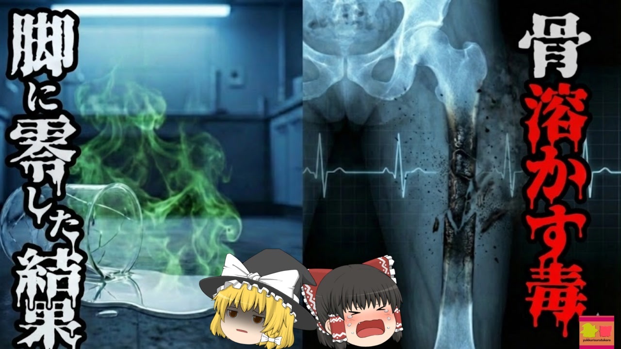 ※冒頭と終盤に投稿主の肉声が含まれます。<br>【目次】<br><a href="#" class="seekTime" data-seekTime="0:00" onclick="seekNicoPlayer('#0:00'); return false;">#0:00</a> 冒頭挨拶<br><a href="#" class="seekTime" data-seekTime="01:11" onclick="seekNicoPlayer('#01:11'); return false;">#01:11</a> 本編開始<br><a href="#" class="seekTime" data-seekTime="1:52" onclick="seekNicoPlayer('#1:52'); return false;">#1:52</a> ベテラン研究員の「Aさん」の行動<br><a href="#" class="seekTime" data-seekTime="3:09" onclick="seekNicoPlayer('#3:09'); return false;">#3:09</a> 事故に至る経緯と初期対応<br><a href="#" class="seekTime" data-seekTime="5:24" onclick="seekNicoPlayer('#5:24'); return false;">#5:24</a> 医療機関での対応<br><a href="#" class="seekTime" data-seekTime="7:26" onclick="seekNicoPlayer('#7:26'); return false;">#7:26</a> 事故原因と彼の体内で起きたこと<br><a href="#" class="seekTime" data-seekTime="10:38" onclick="seekNicoPlayer('#10:38'); return false;">#10:38</a> 事故調査から読み解く原因<br><a href="#" class="seekTime" data-seekTime="11:57" onclick="seekNicoPlayer('#11:57'); return false;">#11:57</a> 事故が与えた影響と教訓<br><br><br><br><br>【参考文献・論文・引用】 <br>資料名: Significant Incident Summary No. 1: Fatality from Hydrofluoric Acid<br>発行元: WorkSafe Western Australia(1994)<br>論文タイトル: Hydrofluoric acid burns: a review 著者: M. Hatzifotis, et al.<br><br><br><br><br>【使用素材・クレジット】<br>・編集ソフト:YMM4<br>・音声:AquesTalk<br>・きつねゆっくり <a href="http://nicotalk.com/charasozai_kt.html" target="_blank" rel="noopener nofollow">http://nicotalk.com/charasozai_kt.html</a><br>・【BGM・効果音 配布元】<br>・DOVA-SYNDROME:<a href="https://dova-s.jp/" target="_blank" rel="noopener nofollow">https://dova-s.jp/</a><br>・効果音ラボ:<a href="https://soundeffect-lab.info/" target="_blank" rel="noopener nofollow">https://soundeffect-lab.info/</a><br>・背景映像:Google Earth Studio / Pixabay / MotionElements<br>・BGM:海底の神殿:MAKOTO / <br><br />※この動画は過去の事件を知り、現在でも同じことが発生する危険性を再認識、関与しないように促すための動画であり、視聴者を扇動、動揺を誘うためのコンテンツではありません。<br><br>ご要望にお応えして、メンバーシップの開設を行いました。<br>下記URLからも登録可能ですので、ご興味がある方は是非ご参加ください。<br><a href="https://www.youtube.com/channel/UCcT5a1J7XJW7CLYI2RKl4pw/join" target="_blank" rel="noopener nofollow">https://www.youtube.com/channel/UCcT5a1J7XJW7CLYI2RKl4pw/join</a><br><br><br>Twitter<br>→<a href="https://twitter.com/yukkurisurutoko" target="_blank" rel="noopener nofollow">https://twitter.com/yukkurisurutoko</a><br><br>取り急ぎ、簡易的にですがマイリストを作りました。<br>【ゆっくり解説】事故・事件関係紹介リスト <br><a href="https://www.nicovideo.jp/mylist/71034319" target="_blank" rel="noopener nofollow">https://www.nicovideo.jp/mylist/71034319</a><br>【ゆっくり解説】放射線系事故<br><a href="https://www.nicovideo.jp/mylist/71034368" target="_blank" rel="noopener nofollow">https://www.nicovideo.jp/mylist/71034368</a><br>【ゆっくり解説】鉄道系事故・事件関連<br><a href="https://www.nicovideo.jp/mylist/71034379" target="_blank" rel="noopener nofollow">https://www.nicovideo.jp/mylist/71034379</a>
