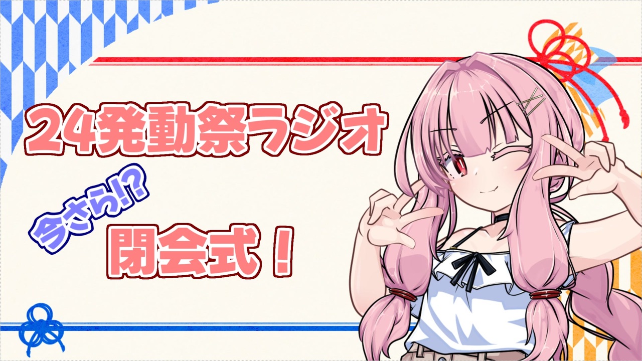 超特急で作成したからか既に編集ミスを見つけてしまったんやけど…<br>葵ー、どーしよ!<br><br><br>2025/5/31<br>初投稿動画祭でご一緒させていただいた皆さんと合同企画を行いました。<br>いつかやりたいと言っていた閉会式動画がようやく出来上がりました。<br>※コラボ企画の閉会式動画となります(完全に自己満な仕上がりです、すみません)。<br><br>よければまた巡回してくれたら嬉しいです。<br><br>【内容】 <br>・ラジオ動画<br><br>【投稿日時(終了しています)】 <br>・2025/5/31(土):18〜24時の間<br><br>【参加者】(投稿順、敬称略)<br>焼き網ひばち:<a href="https://www.nicovideo.jp/user/34344993" target="_blank" rel="noopener">user/34344993</a><br>tanzanite:<a href="https://www.nicovideo.jp/user/190964" target="_blank" rel="noopener">user/190964</a><br>アリテエス:<a href="https://www.nicovideo.jp/user/135018724" target="_blank" rel="noopener">user/135018724</a><br>灯火:<a href="https://www.nicovideo.jp/user/57732881" target="_blank" rel="noopener">user/57732881</a><br>はとめGames:<a href="https://www.nicovideo.jp/user/135830034" target="_blank" rel="noopener">user/135830034</a><br>るな:<a href="https://www.nicovideo.jp/user/38192995" target="_blank" rel="noopener">user/38192995</a><br>ぽち:<a href="https://www.nicovideo.jp/user/23165798" target="_blank" rel="noopener">user/23165798</a><br>ぼあ:<a href="https://www.nicovideo.jp/user/126459465" target="_blank" rel="noopener">user/126459465</a><br>観賞魚:<a href="https://www.nicovideo.jp/user/135070829" target="_blank" rel="noopener">user/135070829</a><br>つかどん:<a href="https://www.nicovideo.jp/user/118573382" target="_blank" rel="noopener">user/118573382</a><br>藤野ユウ:<a href="https://www.nicovideo.jp/user/135095687" target="_blank" rel="noopener">user/135095687</a><br>末田くさり:<a href="https://www.nicovideo.jp/user/54535295" target="_blank" rel="noopener">user/54535295</a><br>わああ:<a href="https://www.nicovideo.jp/user/118807975" target="_blank" rel="noopener">user/118807975</a><br>えーりひ:<a href="https://www.nicovideo.jp/user/133144109" target="_blank" rel="noopener">user/133144109</a><br>コノモノ:<a href="https://www.nicovideo.jp/user/56861321" target="_blank" rel="noopener">user/56861321</a>