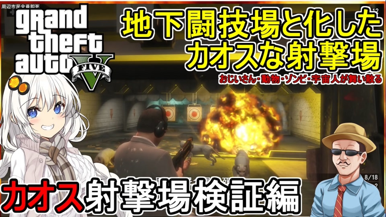 射撃場という狭い空間の中で起こるカオスの渦<br>それはロスサントス地下闘技場と化していった<br><br>YouTube高画質版:<a href="https://youtu.be/upKc0pofQ6o" target="_blank" rel="noopener nofollow">https://youtu.be/upKc0pofQ6o</a><br>YouTubeチャンネル:<a href="https://www.youtube.com/channel/UCs_0n9y_qw6fAniS4mQ7q8w" target="_blank" rel="noopener nofollow">https://www.youtube.com/channel/UCs_0n9y_qw6fAniS4mQ7q8w</a><br>Twitter:<a href="https://twitter.com/naoreisen" target="_blank" rel="noopener nofollow">https://twitter.com/naoreisen</a><br><br>次回 ふにんがす:パーティアニマルズ:超肉体強化されたアニマル達編:<a href="https://www.nicovideo.jp/watch/sm45951029" class="watch">sm45951029</a><br><br>前回 ふにんがす:AmongUs:ヴァンパイアVSリモコンVSバグ編:<a href="https://www.nicovideo.jp/watch/sm45920857" class="watch">sm45920857</a><br>前回 GTA5:カオス磯野モード:遊園地でカオス検証編:<a href="https://www.nicovideo.jp/watch/sm45903121" class="watch">sm45903121</a><br>前回 ガーティックフォン:ムキムキのピカチュウとふにち編:<a href="https://www.nicovideo.jp/watch/sm45812574" class="watch">sm45812574</a><br>前回 凪尾クラフト:夏祭り編:<a href="https://www.nicovideo.jp/watch/sm45564839" class="watch">sm45564839</a><br>前回 GTA5:夏休み編2025:最終回:<a href="https://www.nicovideo.jp/watch/sm45480486" class="watch">sm45480486</a><br>前回 パーティアニマルズ:イタズラ妨害狸編:<a href="https://www.nicovideo.jp/watch/sm45113701" class="watch">sm45113701</a><br>前回 猫ミームブラック企業動画:<a href="https://www.nicovideo.jp/watch/sm43364794" class="watch">sm43364794</a><br>前回 GTA動画:KICK BACK PV再現:<a href="https://www.nicovideo.jp/watch/sm41527305" class="watch">sm41527305</a><br />ふにんがす動画マイリスト <a href="https://www.nicovideo.jp/mylist/71314393" target="_blank" rel="noopener">mylist/71314393</a><br>GTA5手配度MAXシリーズ <a href="https://www.nicovideo.jp/mylist/18374381" target="_blank" rel="noopener">mylist/18374381</a><br><br>【凪尾マイクラ等サーバー参加方法】<br>ニコニコ凪尾チャンネル・クリエイターサポート加入者・NicoFTパス所持者 YouTubeメンバーシップゴールド以上の方々が参加できます! 分からないことがあったら気軽に質問してください!<br>ニコニコチャンネル<br><a href="https://ch.nicovideo.jp/nagio-gta?ref=pc_mypage_top" target="_blank" rel="noopener nofollow">https://ch.nicovideo.jp/nagio-gta?ref=pc_mypage_top</a><br>※会員限定動画はニコニコチャンネル加入者・YouTubeメンバーシップノーマル以上から視聴できます。<br><br>■超会議2025グッズ通販(pixivBooth)<br><a href="https://nagio-gta25252.booth.pm/" target="_blank" rel="noopener nofollow">https://nagio-gta25252.booth.pm/</a><br>■ずんだもん立ち絵公開しました<br><a href="http://nico.ms/im10892141" target="_blank" rel="noopener nofollow">http://nico.ms/im10892141</a><br>■琴葉姉妹立ち絵公開しました<br><a href="https://seiga.nicovideo.jp/seiga/im10803182" target="_blank" rel="noopener nofollow">https://seiga.nicovideo.jp/seiga/im10803182</a><br><br>楽曲提供:ぺんぺんさん:<a href="https://www.nicovideo.jp/user/93911302" target="_blank" rel="noopener">user/93911302</a><br>ふにちかさん作凪尾立ち絵:<a href="https://seiga.nicovideo.jp/seiga/im10956602?nicorepotwitter_upload_illust" target="_blank" rel="noopener nofollow">https://seiga.nicovideo.jp/seiga/im10956602?nicorepotwitter_upload_illust</a><br><br>▼以下配信活動ページ:よかったら登録してね!<br>ニコ生<br><a href="https://www.nicovideo.jp/user/2620730/live_programs?ref=pc_userpage_menu" target="_blank" rel="noopener nofollow">https://www.nicovideo.jp/user/2620730/live_programs?ref=pc_userpage_menu</a><br>YouTubeiS4mQ7q8w?sub_confirmation=1<br>Twitch:<a href="https://www.twitch.tv/nagiogames" target="_blank" rel="noopener nofollow">https://www.twitch.tv/nagiogames</a><br>ツイキャス:<a href="https://twitcasting.tv/g:106250988999788152314" target="_blank" rel="noopener nofollow">https://twitcasting.tv/g:106250988999788152314</a><br><br>VOICEVOX:ずんだもん VOICEVOX:九州そら
