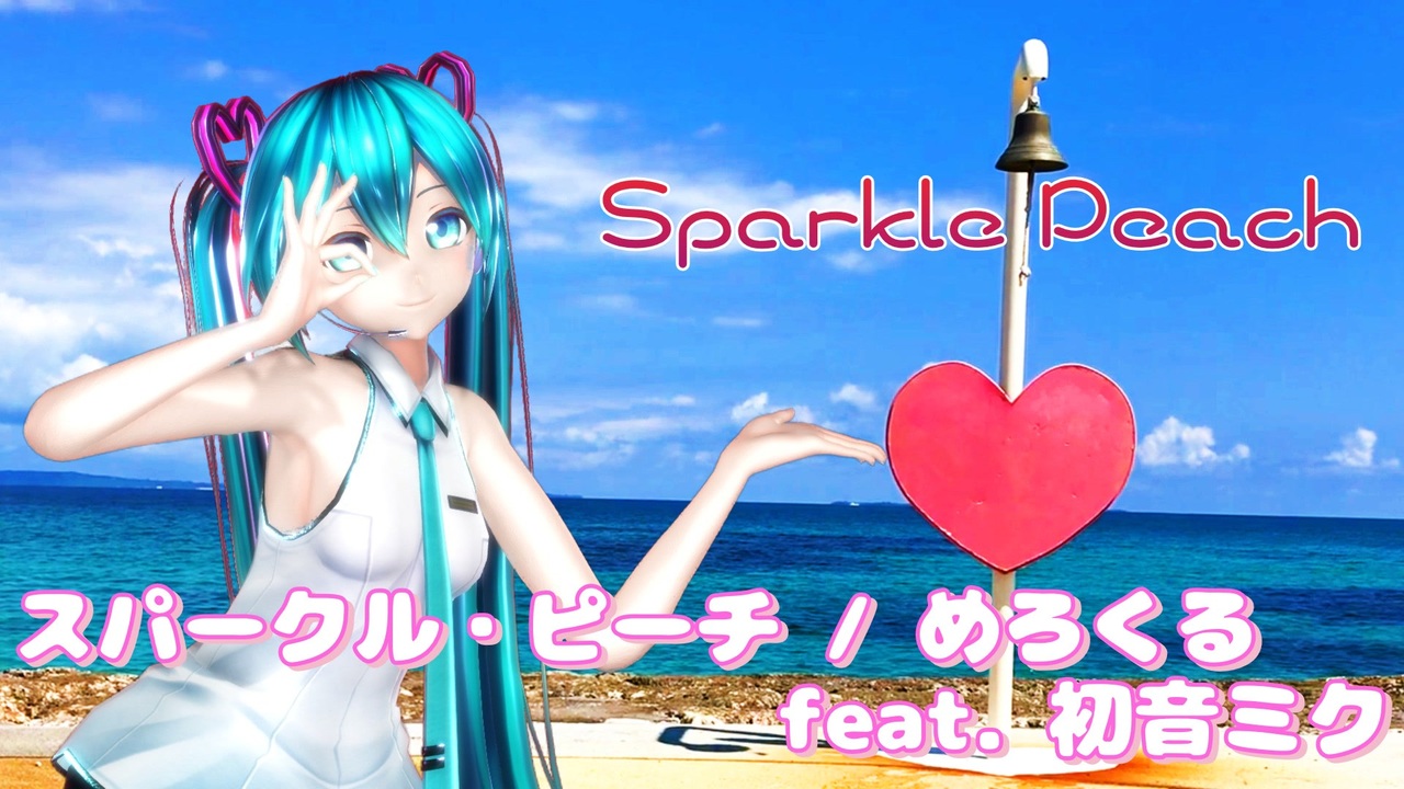 沖縄のビーチでカルも式ミクさんに歌って・踊って頂きました!<br>背景は自宅から車で10分ほどのところにあるビーチです。<br>4月~11月までは別のビーチでシュノーケリングばかりしていますがw<br>冬の時期にはこのビーチによく散歩しに行きますww<br><br><今日の豆知識><br>沖縄県で6番目に面積の大きい島、南大東島(沖縄県島尻郡南大東村)にある<br>"南大東空港" のIATAコードは、"MMD" なんです!<br> ※ IATAコードとは、国際航空運送協会 (IATA) により定められている "3レターコード" と<br> 呼ばれるコードです。<br> ちなみに、羽田空港は、"HND"、成田空港は "NRT"、那覇空港は "OKA" です。<br> さぁ、よいこのみんな! 近くの空港のIATAコードを調べてみよう!!<br><br>楽曲 :<br> スパークル・ピーチ / めろくる feat. 初音ミク<br> めろくる 様: [ <a href="https://www.nicovideo.jp/watch/sm43407779" class="watch">sm43407779</a> ] [ <a href="https://www.youtube.com/watch?v=XefFsRNVwgQ" target="_blank" rel="noopener nofollow">https://www.youtube.com/watch?v=XefFsRNVwgQ</a> ]<br>モーション:<br> 【MMDモーション配布】スパークル・ピーチ<br> つん 様: [ <a href="https://www.nicovideo.jp/watch/sm44686842" class="watch">sm44686842</a> ]<br>振付:<br> 【Memi】スパークル・ピーチ 踊ってみた【オリジナル振付】<br> Memi 様: [ <a href="https://www.nicovideo.jp/watch/sm43543455" class="watch">sm43543455</a> ]<br>モデル :<br> カルも式初音ミクver2.8<br> カルも 様: [ <a href="https://seiga.nicovideo.jp/seiga/im8471305" target="_blank" rel="noopener">im8471305</a> ]<br>動画素材:<br> 動画屋もつ煮込み 様: [ <a href="https://nkmudn.booth.pm/" target="_blank" rel="noopener nofollow">https://nkmudn.booth.pm/</a> ] [ <a href="https://twitter.com/nkmudn_0141" target="_blank" rel="noopener nofollow">https://twitter.com/nkmudn_0141</a> ]<br> 動画AC 様: [ <a href="https://video-ac.com/video/36410" target="_blank" rel="noopener nofollow">https://video-ac.com/video/36410</a> ]<br>動画素材アニメ化:<br> DeeVid AI 様: [ <a href="https://deevid.ai/ja" target="_blank" rel="noopener nofollow">https://deevid.ai/ja</a> ]<br>ステージ(背景動画):<br> 沖縄県南城市 あざまサンサンビーチ: [ <a href="https://azamasunsunbeach.com/" target="_blank" rel="noopener nofollow">https://azamasunsunbeach.com/</a> ]<br> (Google Pixcel 6a, iPhone16e にて撮影)<br>エフェクト:<br> sdPBR Ver. 4.80<br> サンドマン 様: [ <a href="https://www.nicovideo.jp/watch/sm43948524" class="watch">sm43948524</a> ]<br> MMDShadow, HgSAO<br> 針金p 様: [ <a href="https://seiga.nicovideo.jp/seiga/im3910821" target="_blank" rel="noopener">im3910821</a> ] [ <a href="https://seiga.nicovideo.jp/seiga/im4187422" target="_blank" rel="noopener">im4187422</a> ]<br> AutoLuminous, Diffusion7<br> そぼろ 様: [ <a href="https://www.nicovideo.jp/watch/sm16087751" class="watch">sm16087751</a> ] [ <a href="https://www.nicovideo.jp/watch/sm12182051" class="watch">sm12182051</a> ]<br>