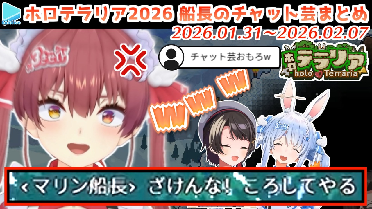 <a href="#" class="seekTime" data-seekTime="00:00" onclick="seekNicoPlayer('#00:00'); return false;">#00:00</a> ちんけ卒業<br><a href="#" class="seekTime" data-seekTime="01:20" onclick="seekNicoPlayer('#01:20'); return false;">#01:20</a> あずにゃんみたいでかわいいね<br><a href="#" class="seekTime" data-seekTime="03:48" onclick="seekNicoPlayer('#03:48'); return false;">#03:48</a> マリンのなだめ方<br><a href="#" class="seekTime" data-seekTime="06:51" onclick="seekNicoPlayer('#06:51'); return false;">#06:51</a> 白いものが出る?<br><a href="#" class="seekTime" data-seekTime="09:14" onclick="seekNicoPlayer('#09:14'); return false;">#09:14</a> あずぺこ...?<br><a href="#" class="seekTime" data-seekTime="09:46" onclick="seekNicoPlayer('#09:46'); return false;">#09:46</a> 新婦の押し付け合い<br><a href="#" class="seekTime" data-seekTime="11:16" onclick="seekNicoPlayer('#11:16'); return false;">#11:16</a> マリッジブルー<br><a href="#" class="seekTime" data-seekTime="12:20" onclick="seekNicoPlayer('#12:20'); return false;">#12:20</a> 牛丼どこ派?<br><a href="#" class="seekTime" data-seekTime="12:54" onclick="seekNicoPlayer('#12:54'); return false;">#12:54</a> ラブポーション<br><br>元動画様はこちら<br>【ホロテラリア】テラリア始めます!!!!!!Day3 ぺこ!【ホロライブ/兎田ぺこら】2026/01/31<br><a href="https://youtu.be/9AQNjyBhjiQ" target="_blank" rel="noopener nofollow">https://youtu.be/9AQNjyBhjiQ</a><br><br>【3】ホロテラリア そうだ、釣りをしよう。 【ホロライブ/白上フブキ】 2026/01/31<br><a href="https://youtu.be/w0s54Wo9dxw" target="_blank" rel="noopener nofollow">https://youtu.be/w0s54Wo9dxw</a><br><br>【ホロテラリア】タイムカードピッ!愉快な仲間たちとテラリアはじめる太郎!【白銀ノエル/ホロライブ】 2026/01/31<br><a href="https://youtu.be/dX5NQJWQJmM" target="_blank" rel="noopener nofollow">https://youtu.be/dX5NQJWQJmM</a><br><br>【ホロテラリア】テラリア始めます!!!!!!Day4 ぺこ!【ホロライブ/兎田ぺこら】2026/02/01<br><a href="https://youtu.be/4nYNdtlfSV0" target="_blank" rel="noopener nofollow">https://youtu.be/4nYNdtlfSV0</a><br><br>【ホロテラリア】テラリア始めます!!!!!!Day5 ぺこ!【ホロライブ/兎田ぺこら】2026/02/03<br><a href="https://youtu.be/7Q0HkTHCIUQ" target="_blank" rel="noopener nofollow">https://youtu.be/7Q0HkTHCIUQ</a><br><br>【ホロテラリア】テラリア始めます!!!!!!Day6 ぺこ!【ホロライブ/兎田ぺこら】 2026/02/04<br><a href="https://youtu.be/qP6wAdYRqrs" target="_blank" rel="noopener nofollow">https://youtu.be/qP6wAdYRqrs</a><br><br>【6】テラリアやるしゅばああああああああああああああああああああああああああああああ!!!!:Terraria ホロテラリア【ホロライブ/大空スバル】 2026/02/04<br><a href="https://youtu.be/v-Y9kqrXCoc" target="_blank" rel="noopener nofollow">https://youtu.be/v-Y9kqrXCoc</a><br><br>【ホロテラリア】ホロメンとゆく!やりたいことが渋滞してるTerraria【ホロライブ/宝鐘マリン】 2026/02/07<br><a href="https://youtu.be/pzLVk2MoMkQ" target="_blank" rel="noopener nofollow">https://youtu.be/pzLVk2MoMkQ</a><br /><span style="color: #b7b7b7; font-size: 10px;">ホロライブ切り抜き/なめたけ <a href="https://t.co/CBwJLnYR2c" target="_blank" rel="noopener nofollow">https://t.co/CBwJLnYR2c</a></span>