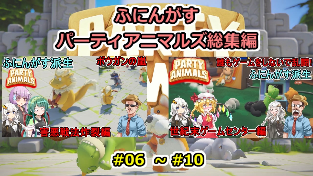 <a href="#" class="seekTime" data-seekTime="00:00" onclick="seekNicoPlayer('#00:00'); return false;">#00:00</a> ドラゴンが怒涛のボウガンの嵐!害悪戦法編<br>#0819 命が軽い!列車を加速するために竈に飛び込め!+ロケット発射口に挟まっちまった!<br><a href="#" class="seekTime" data-seekTime="16:45" onclick="seekNicoPlayer('#16:45'); return false;">#16:45</a> みんな穴に飲み込まれて行く・・!魔のコンベアステージ編 <br><a href="#" class="seekTime" data-seekTime="23:26" onclick="seekNicoPlayer('#23:26'); return false;">#23:26</a> 道連れ多発!不要不急のサムス編<br><a href="#" class="seekTime" data-seekTime="32:59" onclick="seekNicoPlayer('#32:59'); return false;">#32:59</a> ゲームするステージで誰もゲームをしないで乱闘!:世紀末ゲームセンター編 <br><br>ボイロ・CeVIO実況者をメインとした宇宙人狼ゲーム「Among Us」の大規模コラボの「ふにんがす」で行ったパーティアニマルズ<br>その凪尾視点の動画の総集編<br> 06 ~ 10 となっています<br><br>YouTube高画質版:<a href="https://youtu.be/CBC7mE-Pv90" target="_blank" rel="noopener nofollow">https://youtu.be/CBC7mE-Pv90</a><br><br>超会議グッズ通販中!<br><a href="https://nagio-gta25252.booth.pm/" target="_blank" rel="noopener nofollow">https://nagio-gta25252.booth.pm/</a><br>ニコニコクリエイターサポート<br><a href="https://creator-support.nicovideo.jp/registration/2620730" target="_blank" rel="noopener nofollow">https://creator-support.nicovideo.jp/registration/2620730</a><br>ニコニコチャンネル<br><a href="https://ch.nicovideo.jp/nagio-gta?ref=pc_mypage_top" target="_blank" rel="noopener nofollow">https://ch.nicovideo.jp/nagio-gta?ref=pc_mypage_top</a><br>ニコニコパートナーパス<br><a href="https://nicoft.io/" target="_blank" rel="noopener nofollow">https://nicoft.io/</a><br>(↑いずれか加入でリスナー参加型専用ゲームサーバーにアクセスできるぞ!)<br><br>Twitter:<a href="https://twitter.com/naoreisen" target="_blank" rel="noopener nofollow">https://twitter.com/naoreisen</a><br> <br><br>前回 ふにんがす:AmongUs:ヴァンパイアVSリモコンVSバグ編:<a href="https://www.nicovideo.jp/watch/sm45920857" class="watch">sm45920857</a><br>前回 GTA5:カオス磯野モード:遊園地でカオス検証編:<a href="https://www.nicovideo.jp/watch/sm45903121" class="watch">sm45903121</a><br>前回 ガーティックフォン:ムキムキのピカチュウとふにち編:<a href="https://www.nicovideo.jp/watch/sm45812574" class="watch">sm45812574</a><br>前回 凪尾クラフト:夏祭り編:<a href="https://www.nicovideo.jp/watch/sm45564839" class="watch">sm45564839</a><br>前回 GTA5:夏休み編2025:最終回:<a href="https://www.nicovideo.jp/watch/sm45480486" class="watch">sm45480486</a><br>前回 パーティアニマルズ:イタズラ妨害狸編:<a href="https://www.nicovideo.jp/watch/sm45113701" class="watch">sm45113701</a><br>前回 猫ミームブラック企業動画:<a href="https://www.nicovideo.jp/watch/sm43364794" class="watch">sm43364794</a><br>前回 GTA動画:KICK BACK PV再現:<a href="https://www.nicovideo.jp/watch/sm41527305" class="watch">sm41527305</a><br><br />ふにんがす動画マイリスト <a href="https://www.nicovideo.jp/mylist/71314393" target="_blank" rel="noopener">mylist/71314393</a><br>GTA5手配度MAXシリーズ <a href="https://www.nicovideo.jp/mylist/18374381" target="_blank" rel="noopener">mylist/18374381</a><br><br>【凪尾マイクラ等サーバー参加方法】<br>ニコニコ凪尾チャンネル・クリエイターサポート加入者・NicoFTパス所持者 YouTubeメンバーシップゴールド以上の方々が参加できます! 分からないことがあったら気軽に質問してください!<br>ニコニコチャンネル<br><a href="https://ch.nicovideo.jp/nagio-gta?ref=pc_mypage_top" target="_blank" rel="noopener nofollow">https://ch.nicovideo.jp/nagio-gta?ref=pc_mypage_top</a><br>※会員限定動画はニコニコチャンネル加入者・YouTubeメンバーシップノーマル以上から視聴できます。<br><br>■超会議2025グッズ通販(pixivBooth)<br><a href="https://nagio-gta25252.booth.pm/" target="_blank" rel="noopener nofollow">https://nagio-gta25252.booth.pm/</a><br>■ずんだもん立ち絵公開しました<br><a href="http://nico.ms/im10892141" target="_blank" rel="noopener nofollow">http://nico.ms/im10892141</a><br>■琴葉姉妹立ち絵公開しました<br><a href="https://seiga.nicovideo.jp/seiga/im10803182" target="_blank" rel="noopener nofollow">https://seiga.nicovideo.jp/seiga/im10803182</a><br><br>楽曲提供:ぺんぺんさん:<a href="https://www.nicovideo.jp/user/93911302" target="_blank" rel="noopener">user/93911302</a><br>ふにちかさん作凪尾立ち絵:<a href="https://seiga.nicovideo.jp/seiga/im10956602?nicorepotwitter_upload_illust" target="_blank" rel="noopener nofollow">https://seiga.nicovideo.jp/seiga/im10956602?nicorepotwitter_upload_illust</a><br><br>▼以下配信活動ページ:よかったら登録してね!<br>ニコ生<br><a href="https://www.nicovideo.jp/user/2620730/live_programs?ref=pc_userpage_menu" target="_blank" rel="noopener nofollow">https://www.nicovideo.jp/user/2620730/live_programs?ref=pc_userpage_menu</a><br>YouTubeiS4mQ7q8w?sub_confirmation=1<br>Twitch:<a href="https://www.twitch.tv/nagiogames" target="_blank" rel="noopener nofollow">https://www.twitch.tv/nagiogames</a><br>ツイキャス:<a href="https://twitcasting.tv/g:106250988999788152314" target="_blank" rel="noopener nofollow">https://twitcasting.tv/g:106250988999788152314</a><br><br>VOICEVOX:ずんだもん VOICEVOX:九州そら
