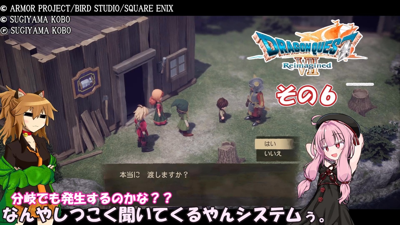 この動画は ドラゴンクエストVII Reimagined の実況プレイ動画となります。<br><br>難易度:いばらの道だぜ!<br><br>ネコ耳縛り?知らない子ですね・・・。<br><br><br>※動画投稿ガイドラインより<br>この動画で利用している株式会社スクウェア・エニックスを代表とする共同著作者が権利を所有する著作物及びスギヤマ工房有限会社が権利を所有する楽曲の転載・配布は禁止いたします。<br>© ARMOR PROJECT/BIRD STUDIO/SQUARE ENIX<br>© SUGIYAMA KOBO<br>℗ SUGIYAMA KOBO<br><br><a href="https://www.nicovideo.jp/watch/sm45935234" class="watch">sm45935234</a> ← 前 次 → <a href="https://www.nicovideo.jp/watch/sm45942448" class="watch">sm45942448</a><br>マイリスト → <a href="https://www.nicovideo.jp/mylist/77305494" target="_blank" rel="noopener">mylist/77305494</a><br>その1リスト → <a href="https://www.nicovideo.jp/mylist/58364125" target="_blank" rel="noopener">mylist/58364125</a><br><br>※使用Voice(及び配役)<br>VOICEVOX:春日部つむぎ(ネコ耳) 東北きりたん(きりたん)<br>立ち絵:ネコ耳(470/43様より頂きました)<br>Voiceroid:東北きりたん(立ち絵:このりEX様作 東北きりたん立ち絵素材5 <a href="https://seiga.nicovideo.jp/seiga/im10819054" target="_blank" rel="noopener">im10819054</a>)<br> 琴葉茜(立ち絵:ぴぴ様作 琴葉の茜ちゃん立ち絵 <a href="https://seiga.nicovideo.jp/seiga/im11484646" target="_blank" rel="noopener">im11484646</a>)<br> 琴葉葵(立ち絵:ぴぴ様作 琴葉の葵ちゃん立ち絵 <a href="https://seiga.nicovideo.jp/seiga/im11483449" target="_blank" rel="noopener">im11483449</a>)