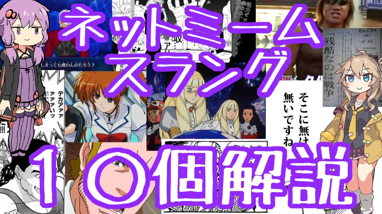 ネットでよく見かけるネタの元ネタなどを10個解説しています<br><br>今回はリクエスト廻<br><br>1.デカァァァァァいッ説明不要!!<br>2.別に、アレを倒してしまっても構わんのだろう?<br>3.強いられているんだ!<br>4.そこに無ければ無いですね<br>5.エネルギー吸収アリーナ<br>6.残酷なのは戦争<br>7.・・・少し・・・頭冷やそうか・・・?<br>8.孔明の罠<br>9.これマジ?<br>10.黒歴史<br><br><br>前⇒<a href="https://www.nicovideo.jp/watch/sm45927967" class="watch">sm45927967</a><br>次⇒歩くような速さで<br>番外編⇒<a href="https://www.nicovideo.jp/watch/sm45669639" class="watch">sm45669639</a><br><br>part1⇒<a href="https://www.nicovideo.jp/watch/sm43894948" class="watch">sm43894948</a><br>解説済みのネタ一覧⇒<a href="https://docs.google.com/spreadsheets/d/13ZNY49m_mK0AZokz-TjV85o_aGCffPzBl7MtOX9wdow/edit?gid=0#gid=0" target="_blank" rel="noopener nofollow">https://docs.google.com/spreadsheets/d/13ZNY49m_mK0AZokz-TjV85o_aGCffPzBl7MtOX9wdow/edit?gid=0#gid=0</a><br><br>真夜中に雪さんが歌う『夜が明けるよ』⇒<a href="https://www.nicovideo.jp/watch/sm45751410" class="watch">sm45751410</a><br>VOICEROID 女3人、居酒屋にて⇒<a href="https://www.nicovideo.jp/watch/sm45684742" class="watch">sm45684742</a><br>ゆかりさんのマダミス談義⇒<a href="https://www.nicovideo.jp/series/474362" target="_blank" rel="noopener">series/474362</a><br>ふつうの軽音部ふり返り⇒<a href="https://www.nicovideo.jp/series/490000" target="_blank" rel="noopener">series/490000</a><br>結月ゆかりが好きな曲を10曲、好きに語る。⇒<a href="https://www.nicovideo.jp/series/526133" target="_blank" rel="noopener">series/526133</a><br><br>【お借りしたもの】<br>くのださん<br>結月ゆかり 立ち絵<br><a href="https://seiga.nicovideo.jp/seiga/im10653504" target="_blank" rel="noopener nofollow">https://seiga.nicovideo.jp/seiga/im10653504</a><br><br>坂本アヒルさん<br>春日部つむぎ立ち絵素材<br><a href="https://seiga.nicovideo.jp/seiga/im10849150" target="_blank" rel="noopener nofollow">https://seiga.nicovideo.jp/seiga/im10849150</a><br><br><br>苦情など⇒<a href="https://x.com/extra403" target="_blank" rel="noopener nofollow">https://x.com/extra403</a><br>ようつべ版⇒<a href="https://youtu.be/VLFrhxplwcw" target="_blank" rel="noopener nofollow">https://youtu.be/VLFrhxplwcw</a>