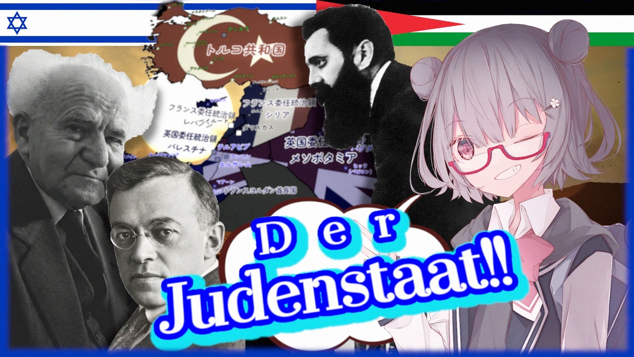 人類史上最大の惨禍となった<span style="color: #ff0000;"><strong>「独ソ戦」</strong></span>について、六花さん達と一緒に学んでいきます。<br>「ナチスドイツが犯したテロル」を取り扱う第7回。今回の Part 4 ではシオニズム、そしてパレスチナを中心とした近代中東の形成過程を取り扱います。<br><span style="color: #ff00ff;"><strong>「いいね」</strong></span>には本編中にはお載せできなかったTipsを埋め込んでいます。<br><br>★本動画の目次<br><a href="#" class="seekTime" data-seekTime="0:00" onclick="seekNicoPlayer('#0:00'); return false;">#0:00</a> イントロダクション<br><a href="#" class="seekTime" data-seekTime="0:50" onclick="seekNicoPlayer('#0:50'); return false;">#0:50</a> シオニズム運動の始まり<br><a href="#" class="seekTime" data-seekTime="2:43" onclick="seekNicoPlayer('#2:43'); return false;">#2:43</a> 主要参考文献の補足説明<br><a href="#" class="seekTime" data-seekTime="4:35" onclick="seekNicoPlayer('#4:35'); return false;">#4:35</a> ハスカラー;ユダヤ啓蒙運動<br><a href="#" class="seekTime" data-seekTime="7:12" onclick="seekNicoPlayer('#7:12'); return false;">#7:12</a> ドレフュス事件から第一回シオニスト会議へ<br><a href="#" class="seekTime" data-seekTime="9:12" onclick="seekNicoPlayer('#9:12'); return false;">#9:12</a> 19世紀ヨーロッパ人としてのヘルツル<br><a href="#" class="seekTime" data-seekTime="13:22" onclick="seekNicoPlayer('#13:22'); return false;">#13:22</a> キシナウ・ポグロムとビアリクの詩<br><a href="#" class="seekTime" data-seekTime="16:32" onclick="seekNicoPlayer('#16:32'); return false;">#16:32</a> シオニズム運動の各派閥<br><a href="#" class="seekTime" data-seekTime="20:20" onclick="seekNicoPlayer('#20:20'); return false;">#20:20</a> シオニスト以外のユダヤ教徒の視点<br><a href="#" class="seekTime" data-seekTime="21:39" onclick="seekNicoPlayer('#21:39'); return false;">#21:39</a> 大戦勃発と大英帝国の誤算<br><a href="#" class="seekTime" data-seekTime="23:25" onclick="seekNicoPlayer('#23:25'); return false;">#23:25</a> 「オスマン帝国最後の世代」<br><a href="#" class="seekTime" data-seekTime="28:18" onclick="seekNicoPlayer('#28:18'); return false;">#28:18</a> アリヤーの開始と旧イシューヴ<br><a href="#" class="seekTime" data-seekTime="30:26" onclick="seekNicoPlayer('#30:26'); return false;">#30:26</a> フサイン=マクマホン書簡<br><a href="#" class="seekTime" data-seekTime="32:42" onclick="seekNicoPlayer('#32:42'); return false;">#32:42</a> サイクス=ピコ協定とセーヴル条約<br><a href="#" class="seekTime" data-seekTime="34:44" onclick="seekNicoPlayer('#34:44'); return false;">#34:44</a> メッカの太守とナジュドの王<br><a href="#" class="seekTime" data-seekTime="37:04" onclick="seekNicoPlayer('#37:04'); return false;">#37:04</a> バルフォア宣言から委任統治規約へ<br><a href="#" class="seekTime" data-seekTime="40:57" onclick="seekNicoPlayer('#40:57'); return false;">#40:57</a> 「民族」的な対立の創出 <br><a href="#" class="seekTime" data-seekTime="42:45" onclick="seekNicoPlayer('#42:45'); return false;">#42:45</a> チャーチル白書とカイロ会議;100年にわたる禍根<br><a href="#" class="seekTime" data-seekTime="46:02" onclick="seekNicoPlayer('#46:02'); return false;">#46:02</a> 嘆きの壁事件とパスフィールド白書<br><a href="#" class="seekTime" data-seekTime="51:28" onclick="seekNicoPlayer('#51:28'); return false;">#51:28</a> ナチスとの取引;ハーヴァラ協定<br><a href="#" class="seekTime" data-seekTime="53:52" onclick="seekNicoPlayer('#53:52'); return false;">#53:52</a> パレスチナ・アラブの反乱<br><a href="#" class="seekTime" data-seekTime="56:13" onclick="seekNicoPlayer('#56:13'); return false;">#56:13</a> ピール報告書とウッドヘッド委員会<br><a href="#" class="seekTime" data-seekTime="57:58" onclick="seekNicoPlayer('#57:58'); return false;">#57:58</a> セント・ジェームズ会議;パレスチナ白書;閉ざされたシオンの地<br><a href="#" class="seekTime" data-seekTime="62:41" onclick="seekNicoPlayer('#62:41'); return false;">#62:41</a> エンディング<br><br>前回: <a href="https://www.nicovideo.jp/watch/sm45501930" class="watch">sm45501930</a><br>次回: 制作中...<br><br>X(旧Twitter): <a href="https://twitter.com/cabernet5080" target="_blank" rel="noopener nofollow">https://twitter.com/cabernet5080</a><br>Bluesky : <a href="https://bsky.app/profile/cabernet5080.bsky.social" target="_blank" rel="noopener nofollow">https://bsky.app/profile/cabernet5080.bsky.social</a><br>note: <a href="https://note.com/cabernet5080" target="_blank" rel="noopener nofollow">https://note.com/cabernet5080</a><br><br>☆注意事項<br>・編集時間の確保のため個別にコメント返信や広告・ギフトへのお礼ができず申し訳ありません。頂いたコメントやご支援はすべて目を通しております。<br /><br>----------<br> <strong>※解説に用いた参考文献のリストは動画の最後に記載しております。</strong>