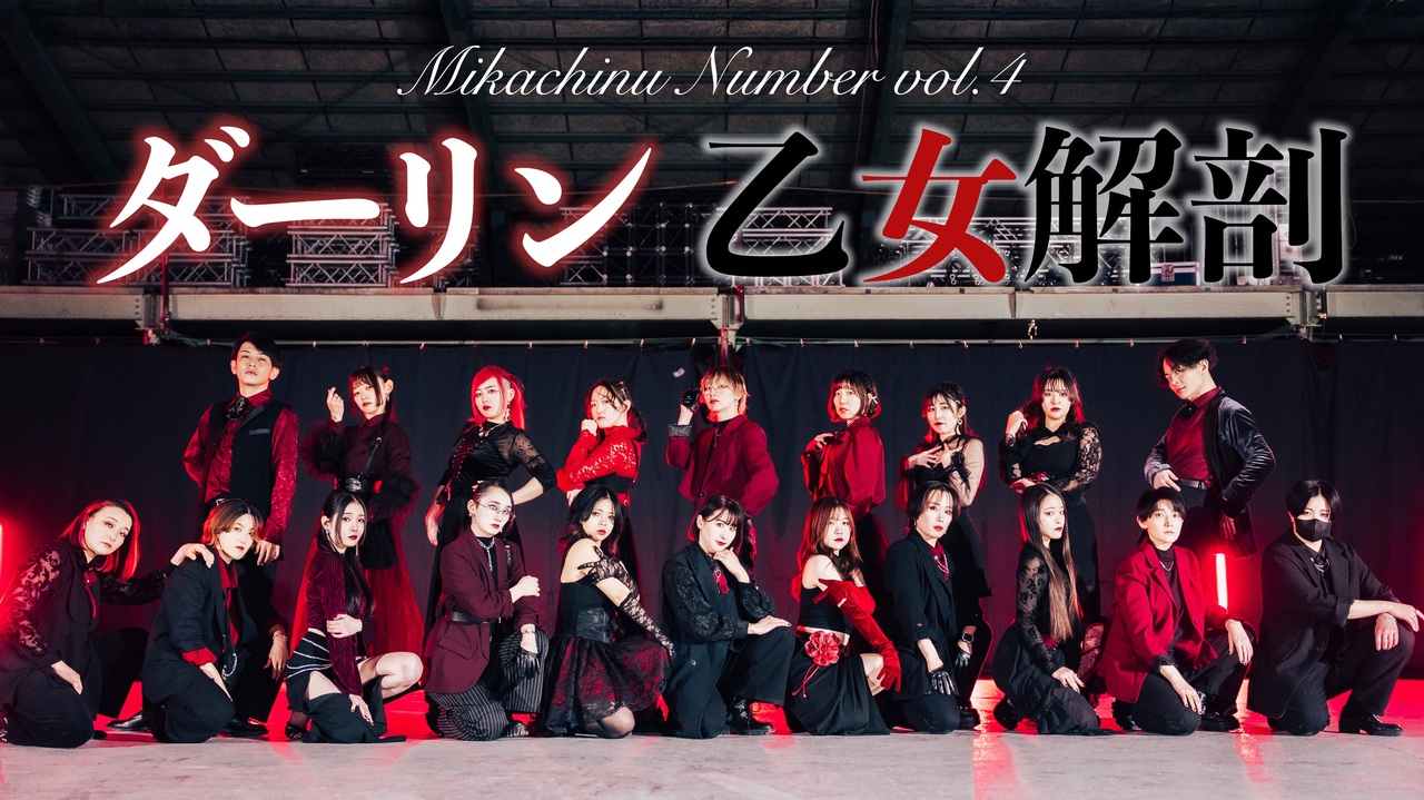 みかちぬナンバー4作品目。<br>昨年の今日、筑前人vol.21で出展したナンバーを動画化しました。<br><br>ずっと作りたかった曲を、20人という大人数で表現しました。<br>ぜひ最後までご覧ください。<br><br>■使用楽曲<br>ダーリン/須田景凪 様 <a href="https://www.nicovideo.jp/watch/sm41697047" class="watch">sm41697047</a><br>乙女解剖/DECO*27様 <a href="https://www.nicovideo.jp/watch/sm34470195" class="watch">sm34470195</a><br><br>■撮影・編集<br>ギと様<br><a href="https://twitter.com/gito_abura" target="_blank" rel="noopener nofollow">https://twitter.com/gito_abura</a><br><br>■サムネ編集<br>Caede様<br><a href="https://x.com/Cae_de_21" target="_blank" rel="noopener nofollow">https://x.com/Cae_de_21</a><br><br>■撮影お手伝い<br>Caede様 nAr様 卯花様<br><br>■振付・構成<br>みかちぬ <a href="https://www.nicovideo.jp/mylist/22983666" target="_blank" rel="noopener">mylist/22983666</a><br><a href="https://twitter.com/mika_chinu?s=11" target="_blank" rel="noopener nofollow">https://twitter.com/mika_chinu?s=11</a><br><br>■みかちぬナンバー4期生(Xアカウント名)<br>むろみ @m_mrmsn_nana<br>諸行無常 @akagon__580<br>ぽーろ @Po_POLO_<br>おちょ @Ocho_d00b<br>ゆうひ @nicoyuhi_a1374<br>ゆら @yurapip<br>りっつ @clairdelune_Lit<br>ニトラ @210maruco<br>小夏 @tetunatu_9164<br>宮多 @Yh8By<br>わたみん @wtmn_UN_172<br>るちゃ @Ru_cha00Pgrl<br>稚菜 @chi_nachi_<br>あい。 @alice_v28<br>♤さまき♤ @DanceSamaki<br>Fuwa @fuwa_ofuwa<br>ろん汰ん @Rntn_r_i<br>麻崎 @maaaah_15<br>きりん @giraffe_104<br><br>■これまでのナンバー作品<br>1作品目:パラサイト <a href="https://www.nicovideo.jp/watch/sm41858389" class="watch">sm41858389</a><br>2作品目:ビーバー <a href="https://www.nicovideo.jp/watch/sm44100663" class="watch">sm44100663</a><br>3作品目:初恋キラー&ラヴィ <a href="https://www.nicovideo.jp/watch/sm45011295" class="watch">sm45011295</a>