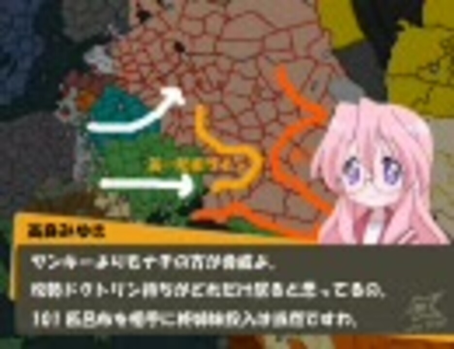 こなたによる大東亜京アニ圏の構築とハルヒによる世界征服の物語の番外編。<br /><br />■物語のルートを決める選択権は視聴者全てにあります。封殺されるのは選択への暴言と工作だけ。<br /> ウチは王道のプレイ動画ではありませんのでゲームを知らなくても問題ナシ。<br />■選択云々で今後の内容が大分変わりますが、どのルートに決定しても充実した内容を提供出来ますのでご安心下さい。<br />■実写映像はベルリン市内の映像ではなかった筈。雰囲気だけお楽しみ下さい。<br />■自走砲の開発に駆逐戦車不要デシタ。<br />■<font color="#ff00ff">選択は締め切られました。ご協力感謝致します。</font><br /><br />マイリスト→<a href="https://www.nicovideo.jp/mylist/6217888" target="_blank" rel="noopener">mylist/6217888</a> 第0話→<a href="https://www.nicovideo.jp/watch/sm3003925" class="watch">sm3003925</a><br />第28話→<a href="https://www.nicovideo.jp/watch/sm4924491" class="watch">sm4924491</a> 第29話→<a href="https://www.nicovideo.jp/watch/sm5076000" class="watch">sm5076000</a>