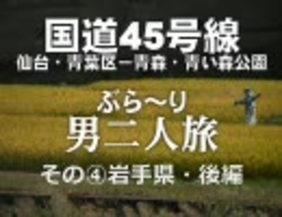 仙台を飛び出して、目指すは青森。<br />動画ではなく写真で送る旅の記憶です。<br /><br />三陸海岸も中盤をすぎました。<br />長い道のりもいずれは終わります。っていうかおわってほしい。<br /><br />その③→<a href="https://www.nicovideo.jp/watch/sm5025793" class="watch">sm5025793</a> その⑤→<a href="https://www.nicovideo.jp/watch/sm5079273" class="watch">sm5079273</a><br />この旅のマイリスト→<a href="https://www.nicovideo.jp/mylist/8955936" target="_blank" rel="noopener">mylist/8955936</a> 各旅一話→<a href="https://www.nicovideo.jp/mylist/8356062" target="_blank" rel="noopener">mylist/8356062</a><br /><br />選曲はどんどんマニアックになっていきます。持ち歌がそういう傾向です。よろしければ → ブログ <a href="http://blogs.yahoo.co.jp/areruet" target="_blank" rel="noopener nofollow">http://blogs.yahoo.co.jp/areruet</a><br />11/5 友人つれてって、いずれは綾の吊り橋においてきてみたい。