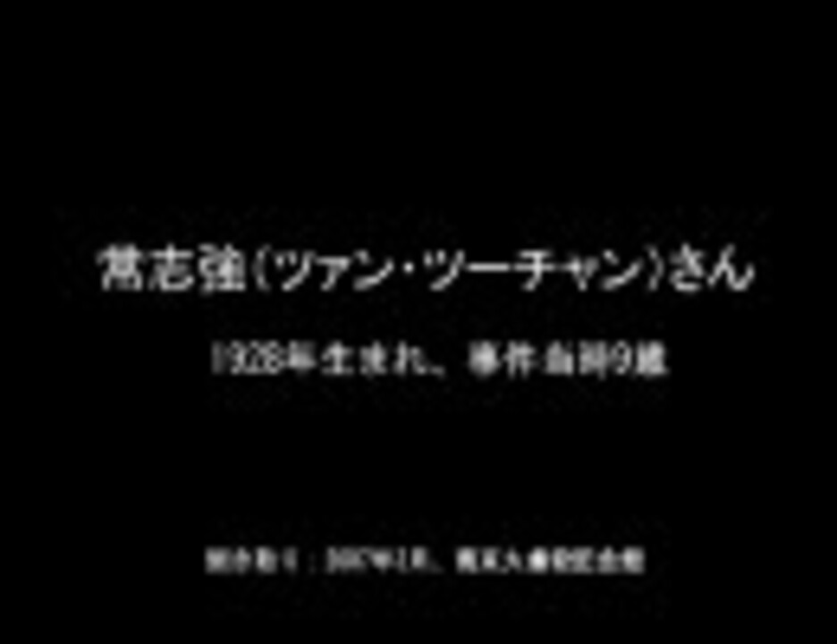 南京虐殺-70年目の証言 常志強(ツァン・ツーチャン)<br />1928年生まれ。9歳で事件にあい、家族のほとんどが殺害された。彼以外で唯一命をとりとめた姉も、日本軍から受けた被害が原因となり後に死亡。<br />分割その2→<a href="https://www.nicovideo.jp/watch/sm5530642" class="watch">sm5530642</a> 分割その3→<a href="https://www.nicovideo.jp/watch/sm5530827" class="watch">sm5530827</a> <a href="https://www.nicovideo.jp/mylist/10064183" target="_blank" rel="noopener">mylist/10064183</a><br /><br />・南京事件資料集<br /><a href="http://members.at.infoseek.co.jp/NankingMassacre/" target="_blank" rel="noopener nofollow">http://members.at.infoseek.co.jp/NankingMassacre/</a><br />・南京事件の真実<br /><a href="http://www.nextftp.com/tarari/index.htm" target="_blank" rel="noopener nofollow">http://www.nextftp.com/tarari/index.htm</a><br />・南京事件FAQ<br /><a href="http://wiki.livedoor.jp/nankingfaq/d/FrontPage" target="_blank" rel="noopener nofollow">http://wiki.livedoor.jp/nankingfaq/d/FrontPage</a><br />・南京事件 ちいさな資料集<br /><a href="http://www.geocities.jp/yu77799/" target="_blank" rel="noopener nofollow">http://www.geocities.jp/yu77799/</a>
