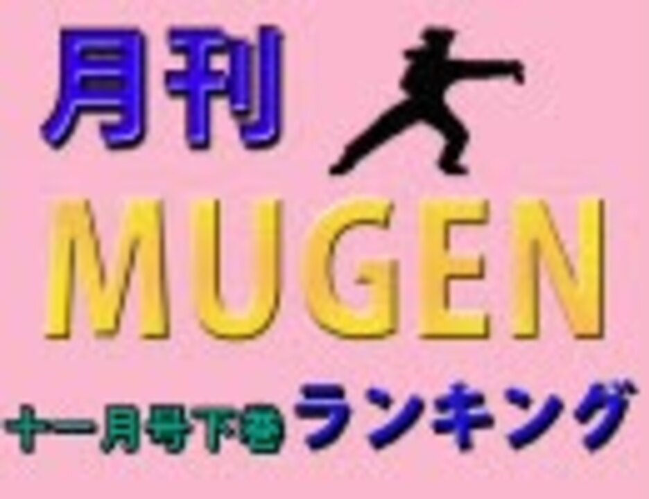 この動画は上巻から見る事をオススメします。→<a href="https://www.nicovideo.jp/watch/sm5513456" class="watch">sm5513456</a><br />この動画は『月刊MUGEN動画ランキング』と『月刊リリースキャラ対戦』の2つのコーナーで構成されています。<br />参戦カテゴリでのアレンジキャラの分別はほぼ独断と偏見です。<br />マイリスト→<a href="https://www.nicovideo.jp/mylist/7939513" target="_blank" rel="noopener">mylist/7939513</a> 11月号結果→削除しました。<br />尚、今回からプレミアムでの投稿になります。<br /><font color="red">【1/13追記】12月号→<a href="https://www.nicovideo.jp/watch/sm5834272" class="watch">sm5834272</a></font><br /><br /><font color="red">この動画が重くて見られない方はこちら</font><font color="blue">【FLV版】→<a href="https://www.nicovideo.jp/watch/sm5618536" class="watch">sm5618536</a><br /></font><br />尚、私のメイン動画の方が12/20で一周年となりました。(5ヶ月休載中ですが)→<a href="https://www.nicovideo.jp/mylist/5182769" target="_blank" rel="noopener">mylist/5182769</a></font>